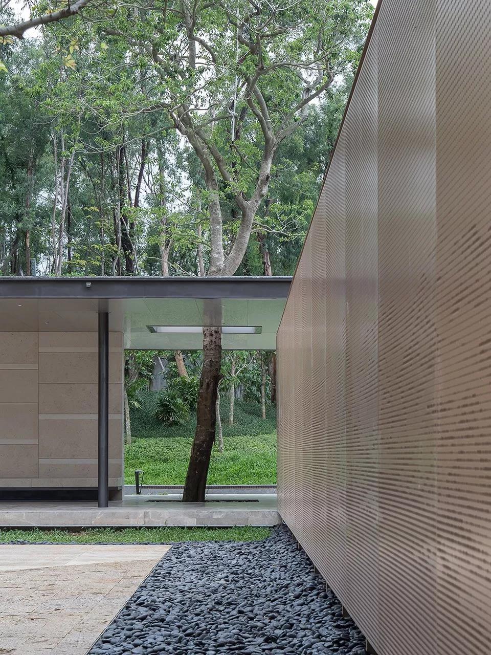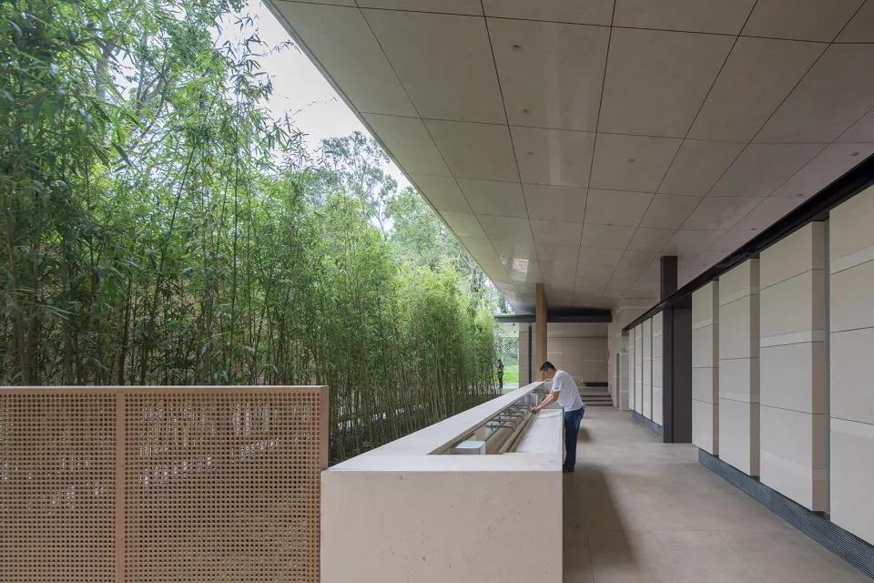 如何因借是我們在設計中反復思考的所在。以休息長廊主導的流動空間中,通過實墻、柱廊、穿孔板、格柵等不同界面的限定和引導,實現空間的延展和轉折、景致的層次和多變,從而獲得流暢豐富的感官體驗。