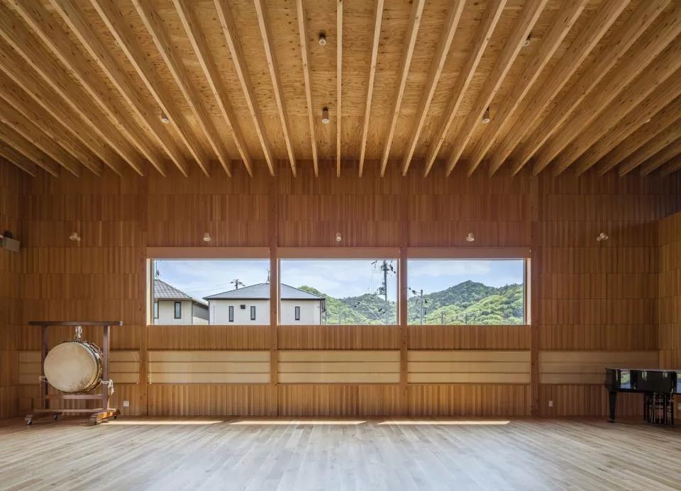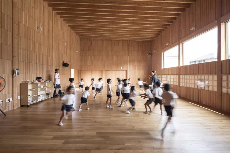 這座幼兒園位于日本兵庫縣(Hyogo Prefecture)的龍野市(Tatsuno City)。在本項目中,建筑師創造了一個具有社區意義的多功能大廳,不僅可以服務于兒童,還可以供當地社區內的居民們使用。