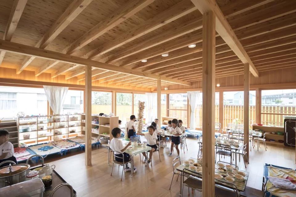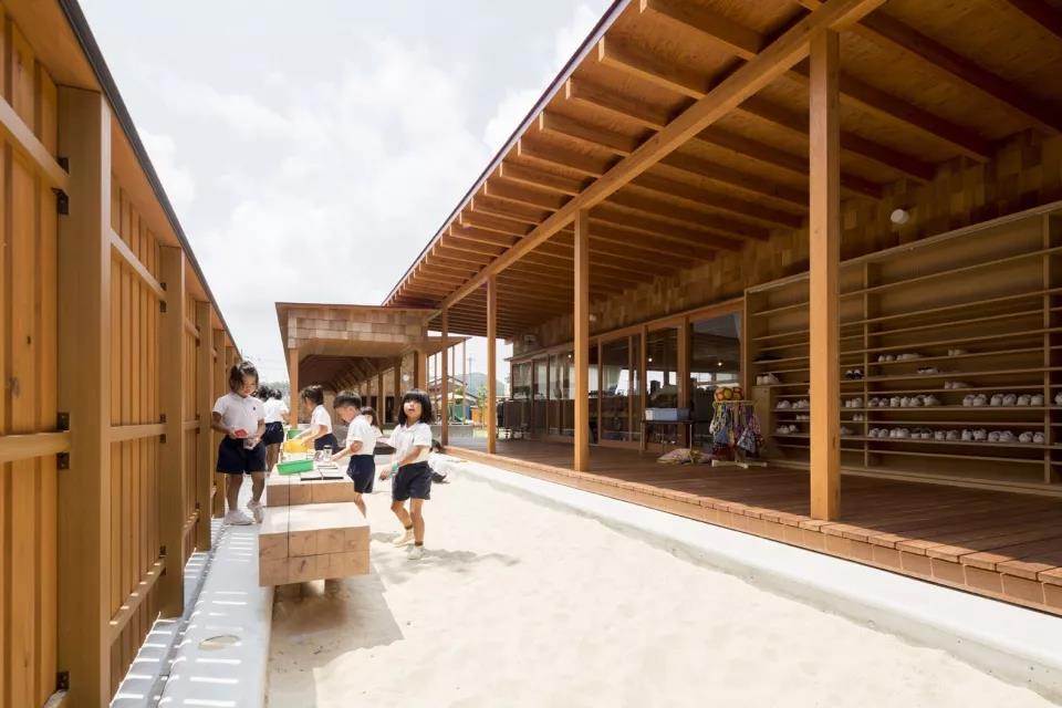這座幼兒園的空間設計完全能夠滿足孩子們的求知欲,如具有開放感的寬敞走廊和半室外空間、高低不一的室內外空間,以及一個擺放著游樂設備的露臺等,都為孩子們提供了自由快樂地成長和學習環境,值得一提的是,人們還可以根據自己的需求,來改變其上文提到的擺放著游樂設備的露臺的空間布局。