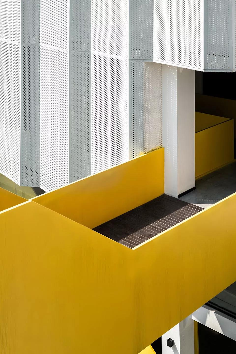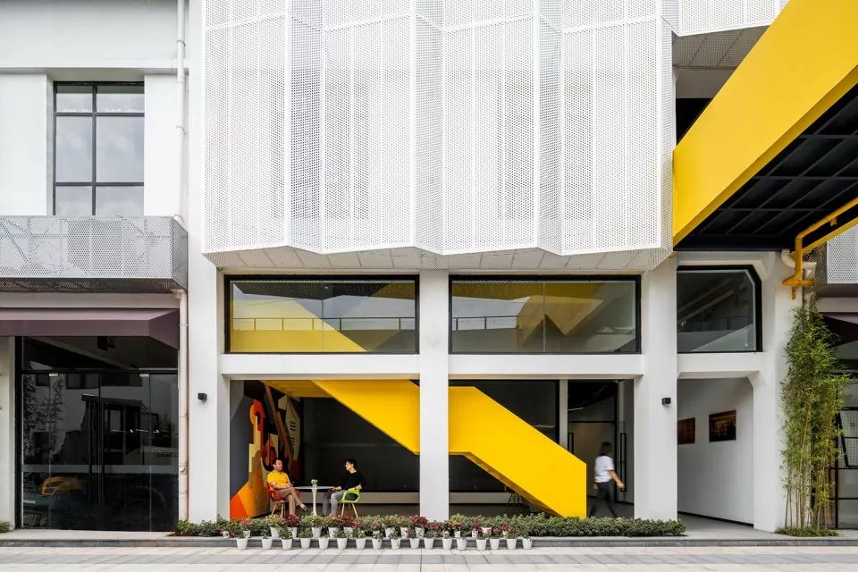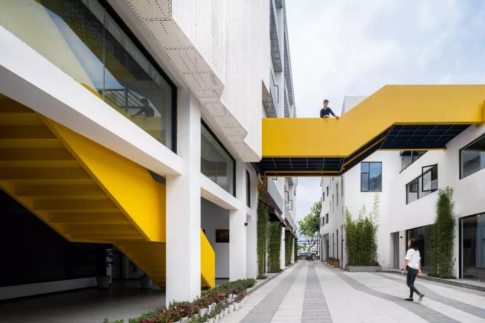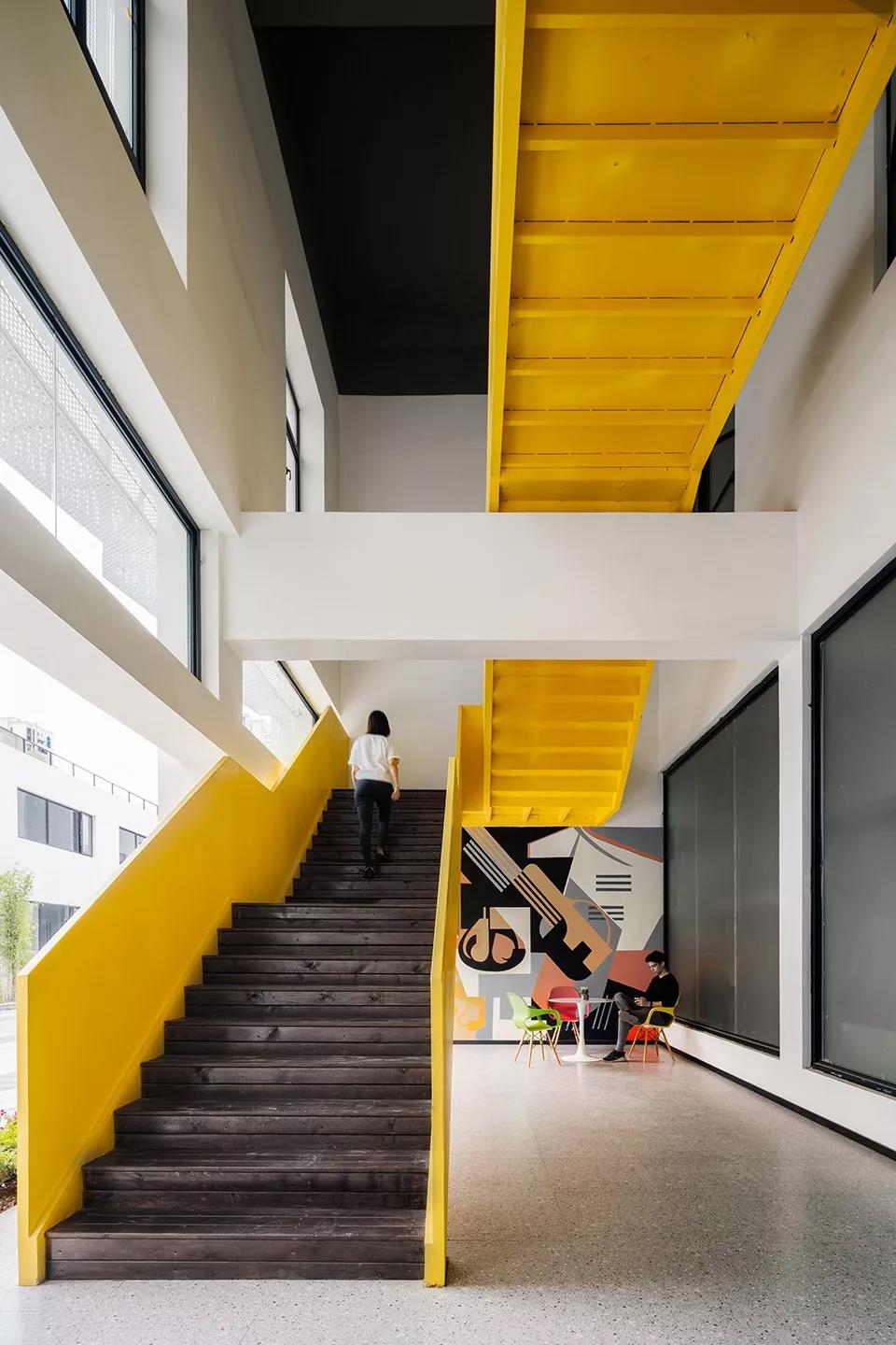 值得一提的是,設計有策略地對建筑局部進行優化,比如設計對建筑之間的樓梯進行藝術化的處理 – 大膽鮮亮的明******不僅讓社區更年輕化,也讓來到此處的人感受到不一樣的美,印象深刻。