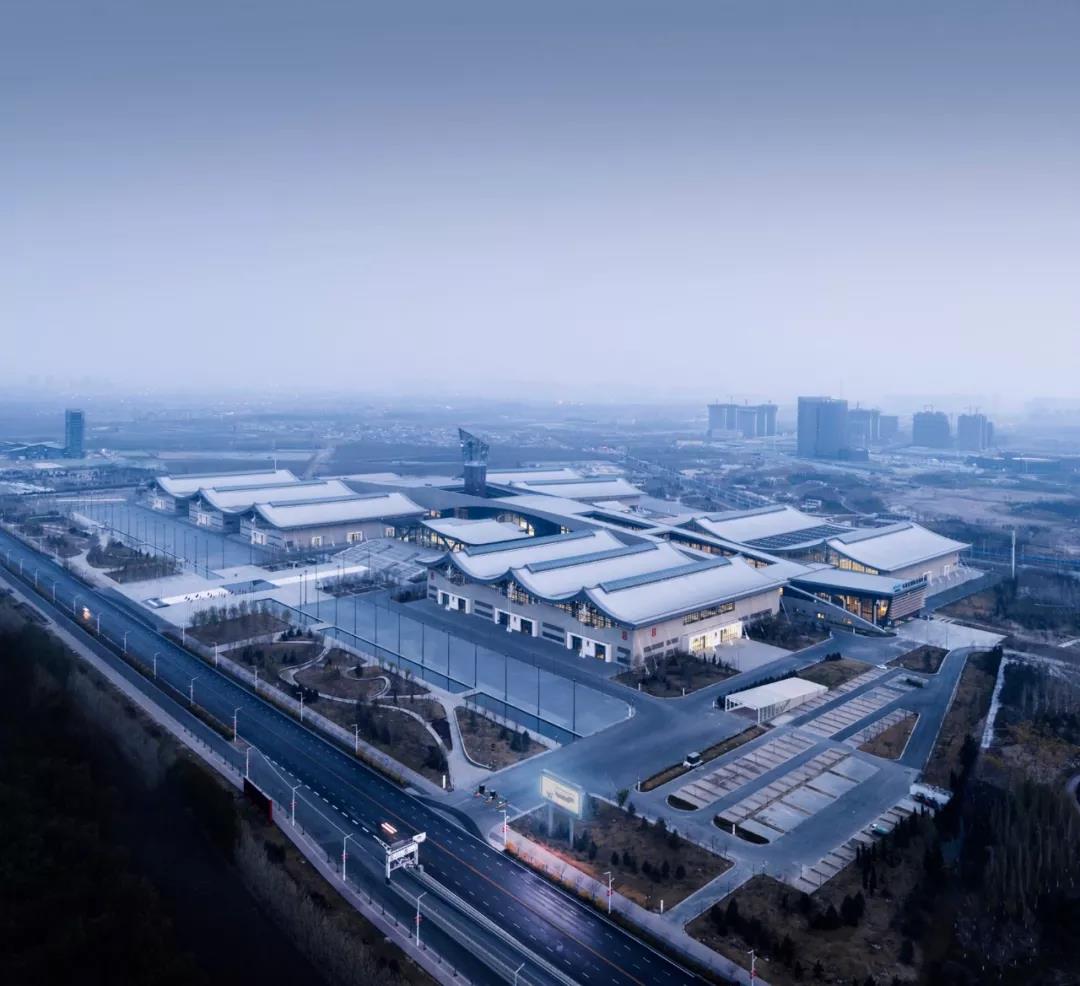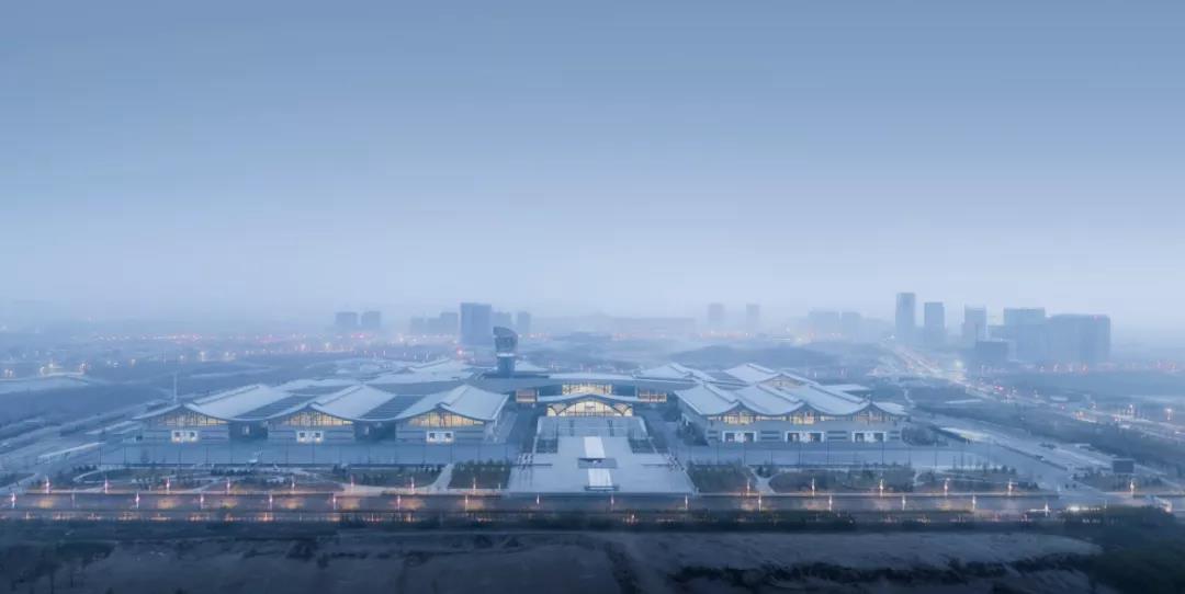石家莊國際會展中心位于石家莊市正定新區(qū),總用地面積64.4公頃。項目總建筑面積35.9萬平方米,其中地上22.9萬平方米。由中央樞紐區(qū)串聯(lián)會議和展覽各個部分,呈魚骨式展開。多標高步行系統(tǒng)實現(xiàn)人、車、貨分流。展覽部分包含七個面積1.1萬平方米標準展廳和一個面積2.6萬平方米的大型多功能展廳。總體展覽建筑面積達11萬平方米,是目前建成的世界最大懸索結構展廳。