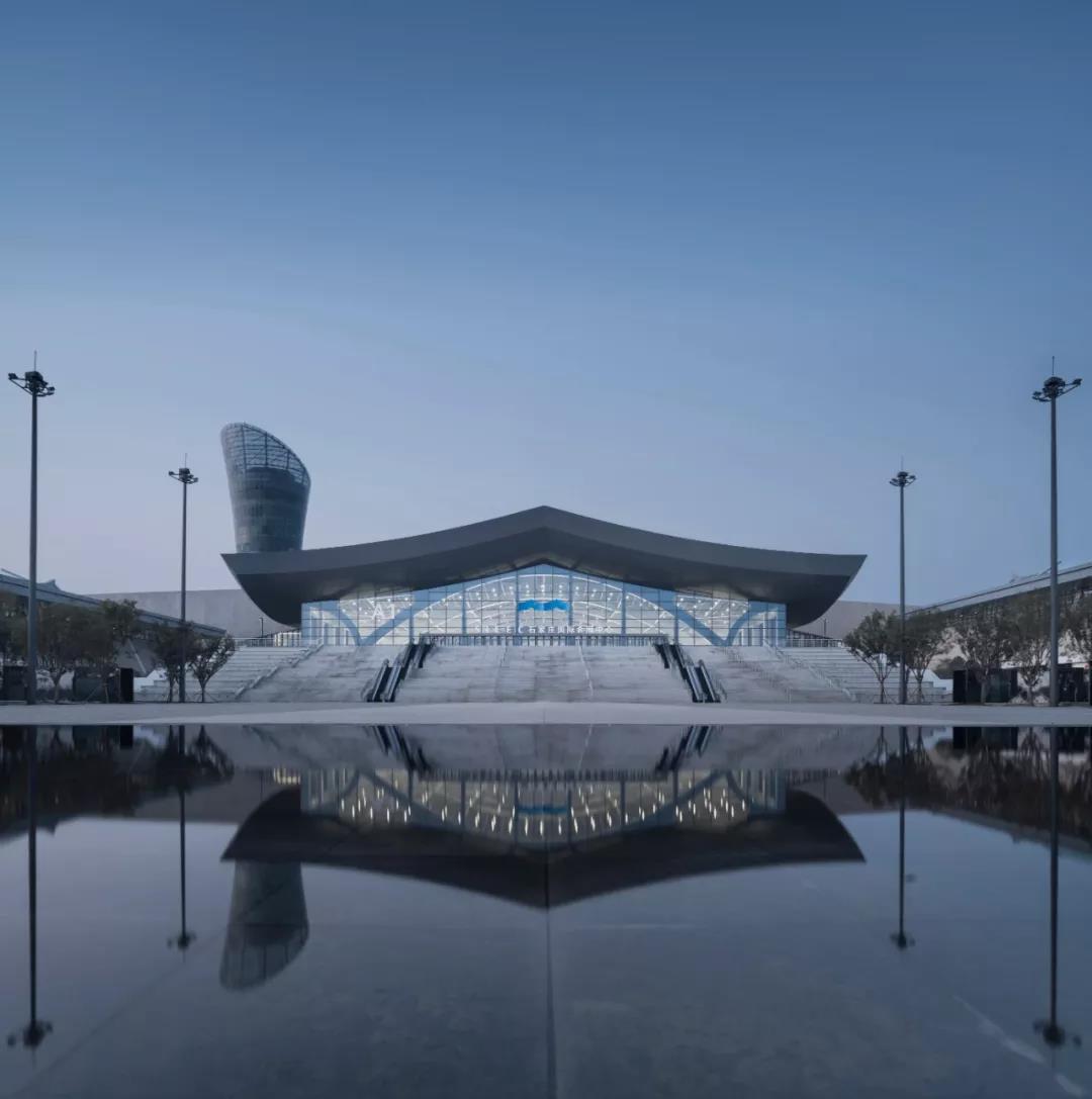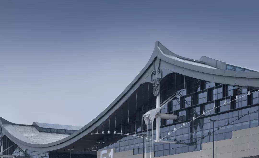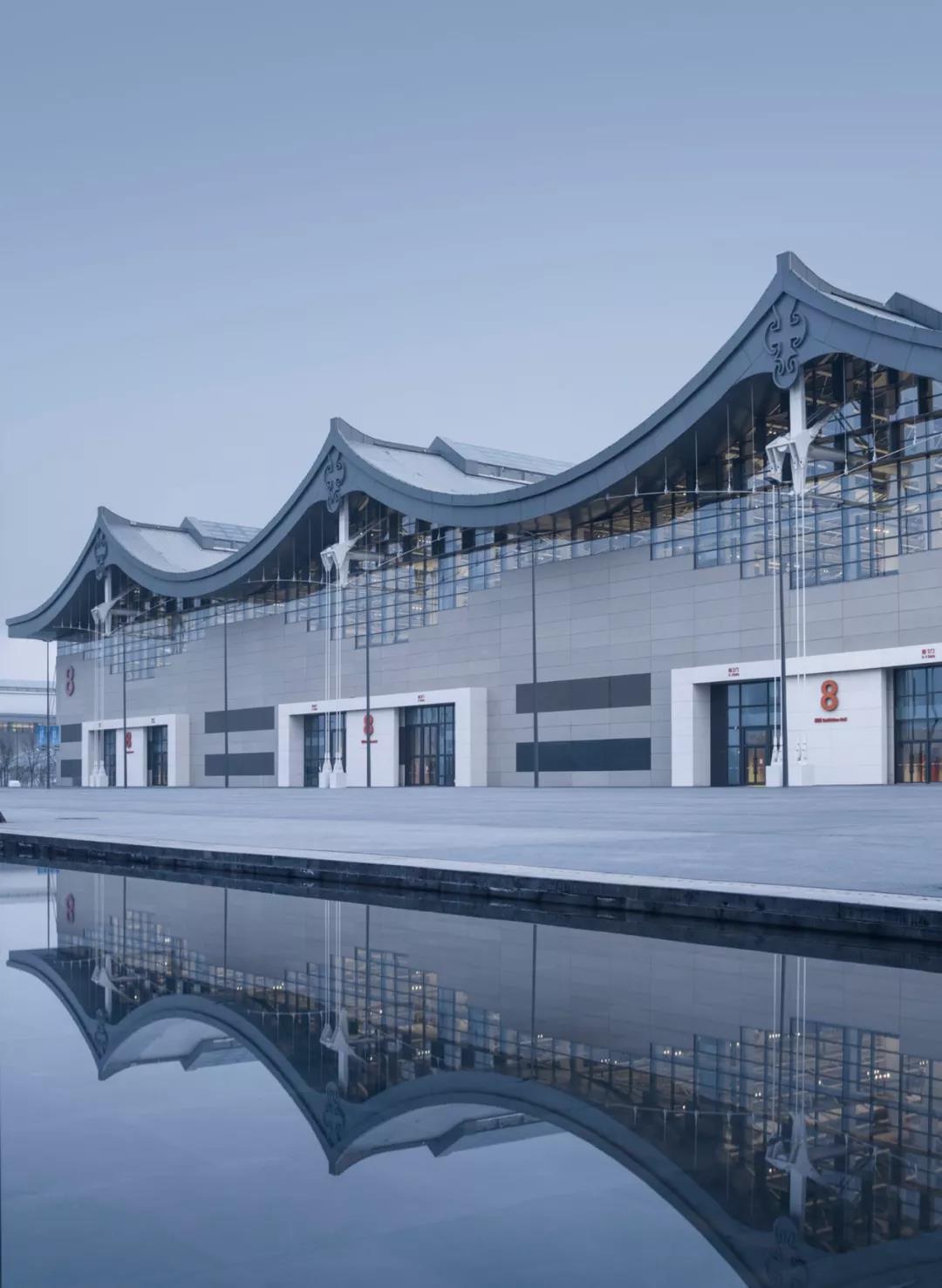 石家莊國際會展中心立足于“前策劃—后評估”研究合理規(guī)劃空間布局,結合造型巧妙運用懸索結構大大降低了鋼材用量,發(fā)掘正定地域特色并抽象表達,以前置綠色目標導向引導設計。該項目建成后取得了良好的社會、經(jīng)濟、環(huán)境效益。