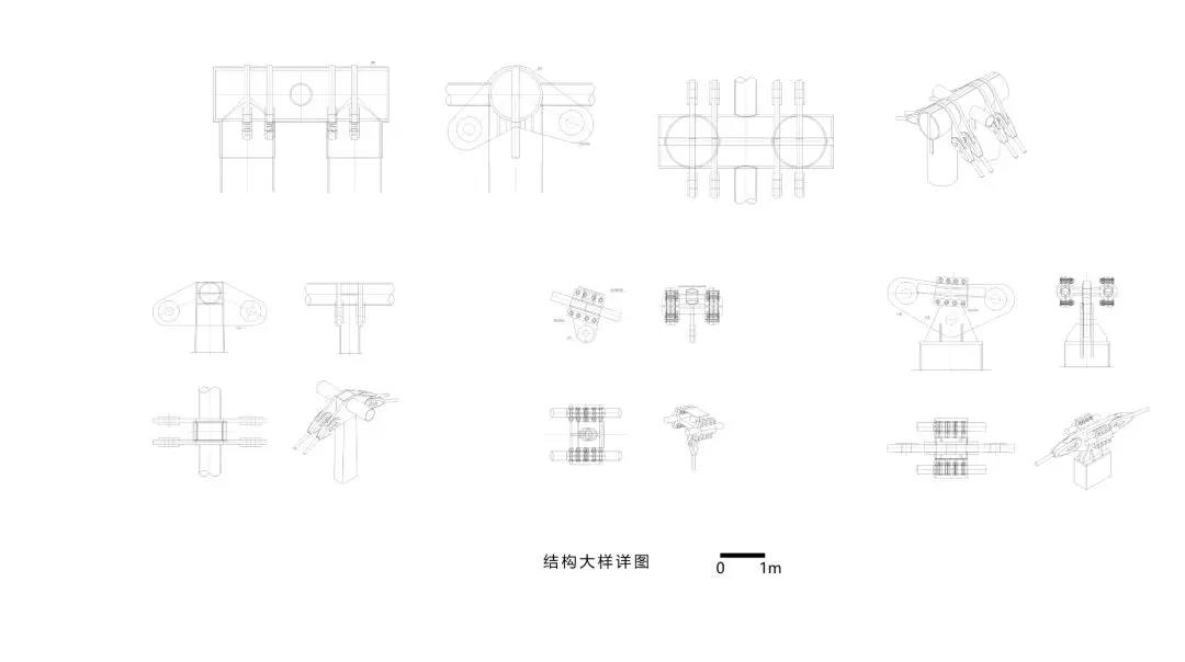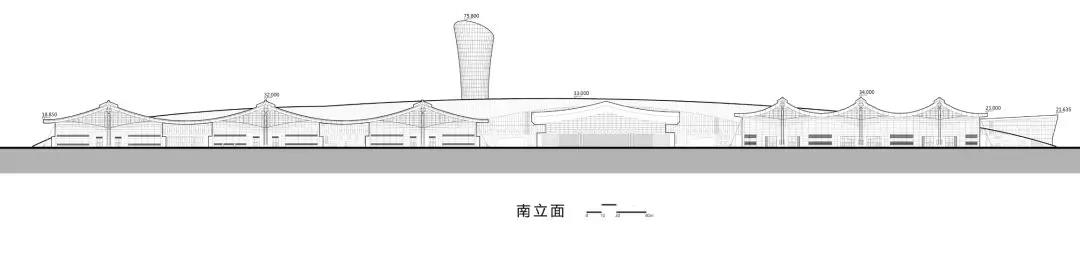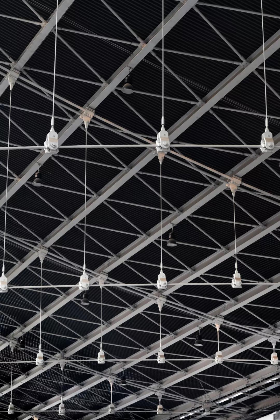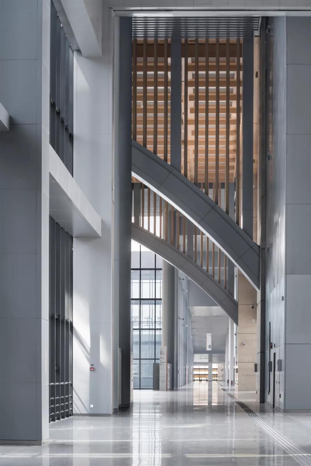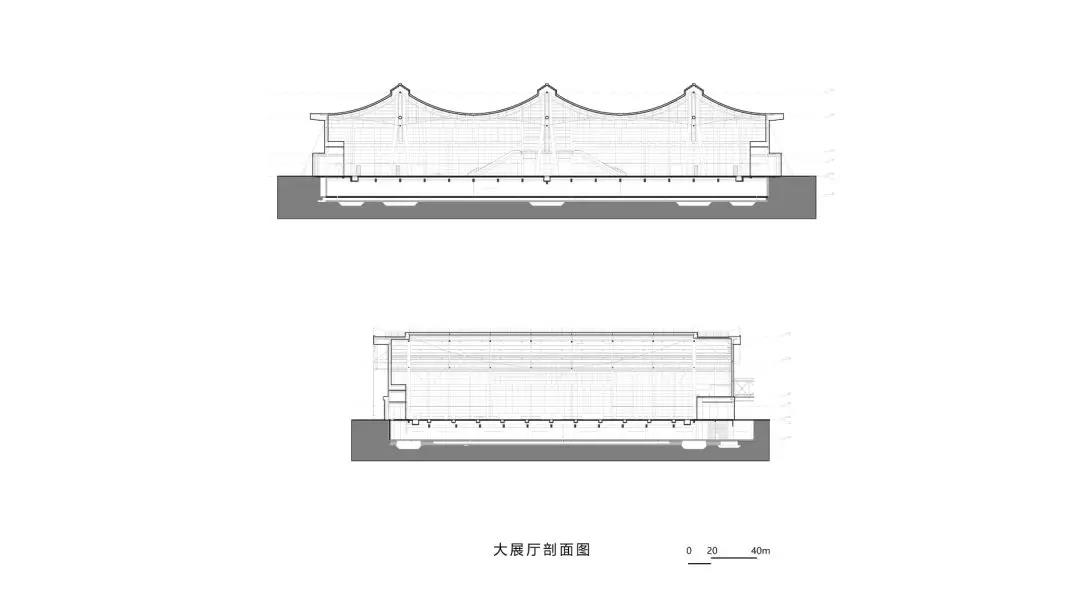 4、由懸索結構自然形成的大屋面形成對傳統(tǒng)建筑的強烈映射,同時在展廳山墻面細部抽取借鑒正定縣隆興寺摩尼殿歇山抱廈意象,用新材料新技術呈現(xiàn)幾何力學和建筑美學的統(tǒng)一,也進一步提升了參觀者對建筑在地性的認同度。