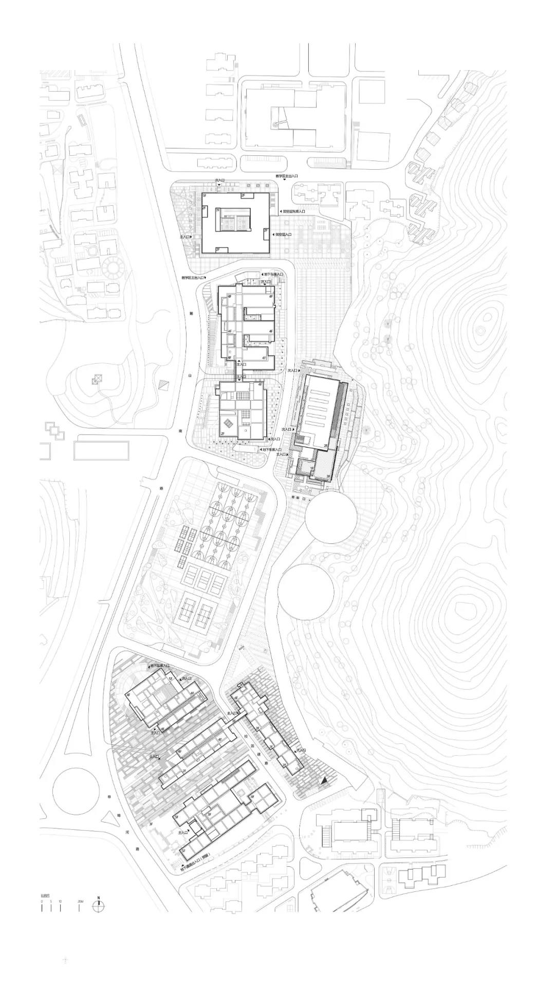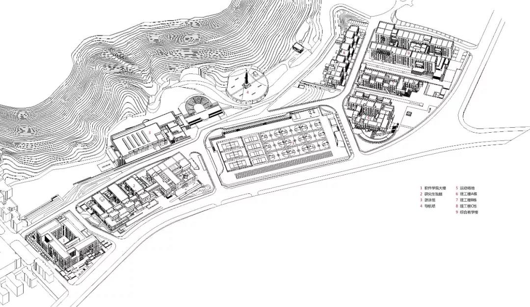 設計整體引入群構的思想,按照學科屬性進行組織,建構出相應的秩序和邏輯,保證了功能使用的高效和便捷,如將物理樓、微電樓和數學樓整合為一個群組。與此同時,在大的分區原則下,設計也注重不同學科的交流融合,如將藝術設計學院和軟件學院置入到一棟樓內,以期產生跨學科思想碰撞的靈感火花。