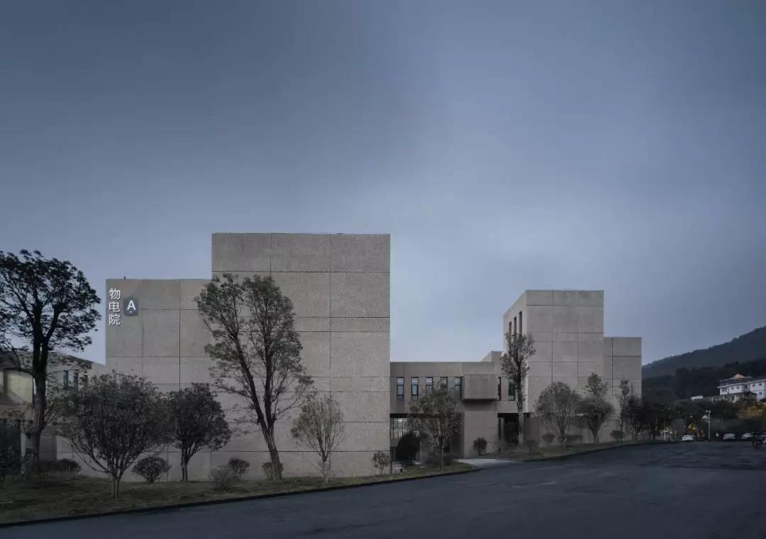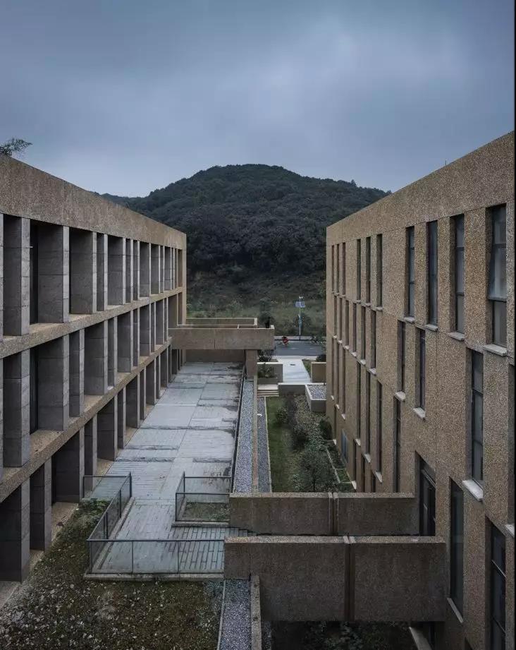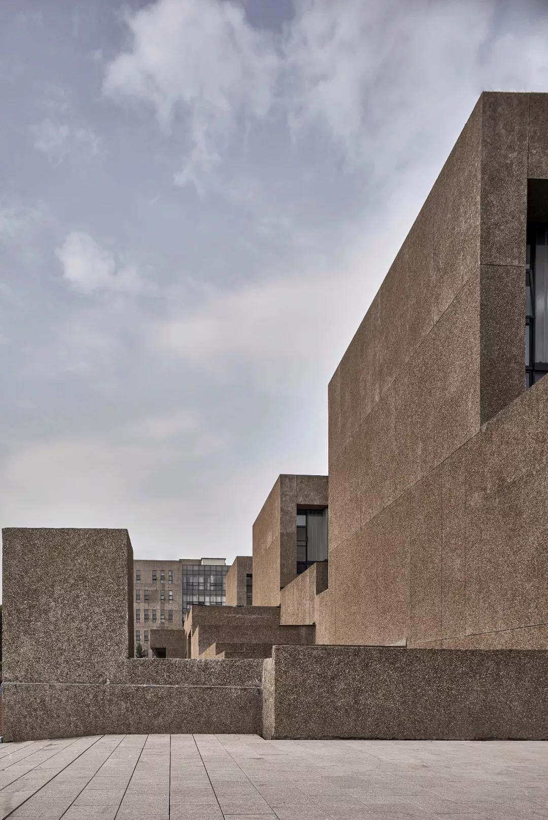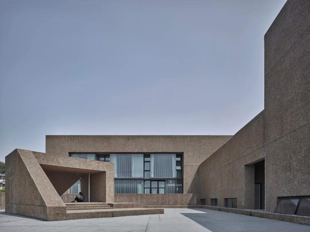 在形態處理上,設計不過多著墨于單體的形構特異性和自身屬性的強力彰顯,謹防校區成為個性化建筑的雜燴拼盤。通過采用單元衍生的構成策略,在各單體之間以及單體各部位之間形成對位、呼應、相似、穿插的關系,保證了它們在尺度上的協調和形態上的劃一,加之以外墻對水刷石材料的純粹使用,讓各個建筑集聚為整體。