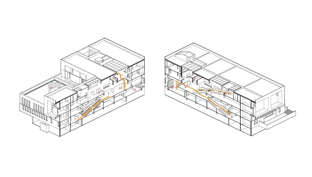 通過對形體連接、抬升、擠壓、切割、退進的操作,留出了基座、平臺、院落、廊橋、巷道、天井等空間。這些空間散布各處,成了促進人際交流和激發更多創意的場所,它們突破本有的功能定義,形成了新的意義延伸。另一方面,這些空間同時產生了陰影區和風道,也是對本土地域氣候的一種積極回應。