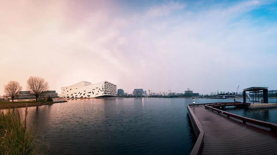 ▼設計最關鍵的一環是對東湖的設計,整個東湖水域寬闊,位于整個地區的中心,波光粼粼的湖面映襯了大劇院璀璨的倒影