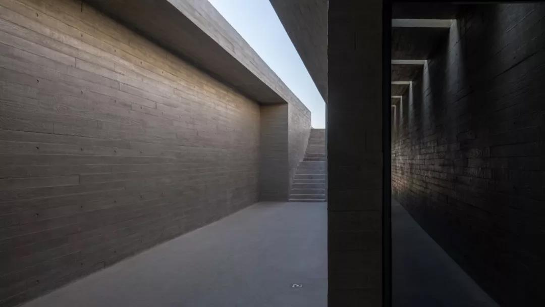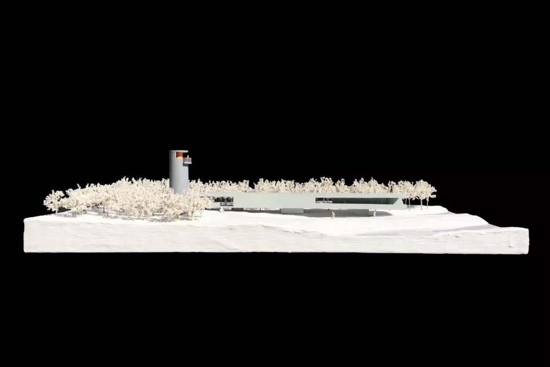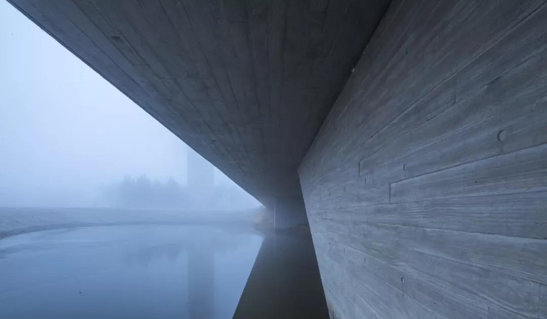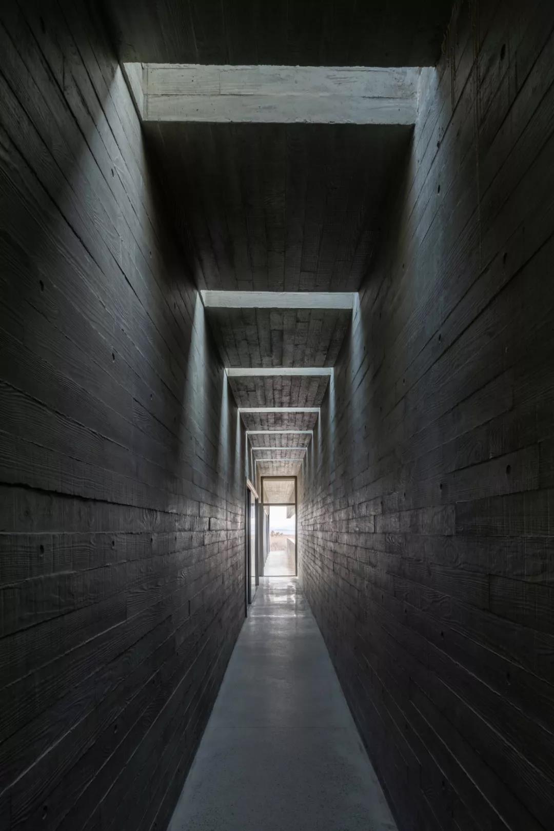 錯縫排列的松木模板為堅硬的混凝土墻體賦予了細膩的木紋肌理,給建筑增添了些許溫暖的性格,同時也回應了場地周邊以松林為主的自然環境特征。