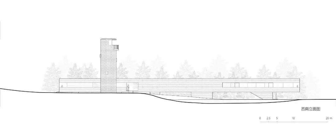 設計起始時,景觀廊的功能僅被規劃為咖啡廳與衛生間。建筑周圍的環境要素與使用者的行為要求希望其呈現出對濕地及松林景觀充分開放的姿態,由此建筑被自然而然地賦予了觀景游覽這一串聯前兩者的第三個屬性。