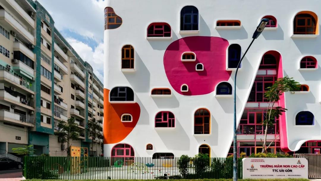 TTC 西貢精英幼兒園位于西貢市西3區,這里緊靠市區火車站。這座新幼兒園是在原有建筑的基礎上改建而成的。它被設計成一個簡單純粹的幾何形狀,以激發孩子們的好奇心,并讓孩子們每天都能夠與它互動。