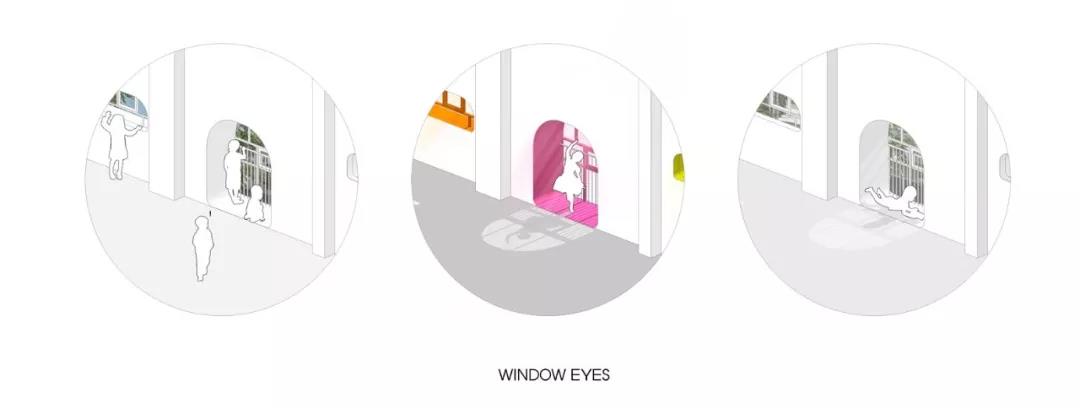 窗戶就是一個孔洞,可以從里面看到外面的風景,這樣可以激發孩子們情感思維、想象力和好奇心,讓在室內玩耍的孩子和不斷變化的外部生活環境之間建立起直接的關系。