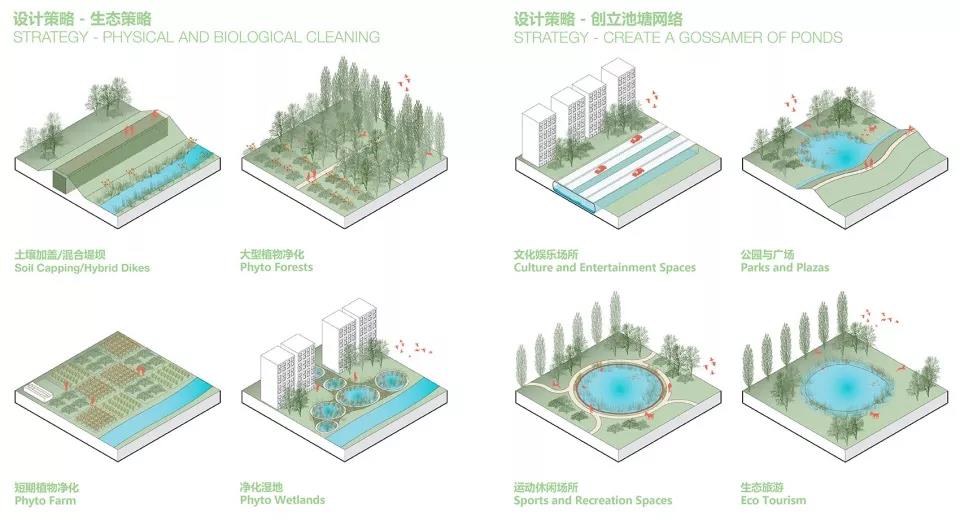 這三個(gè)策略作為一系列適用本地的最佳實(shí)踐,包括多樣性的堤岸開(kāi)放空間與活動(dòng)場(chǎng)所,對(duì)傳統(tǒng)中國(guó)村落布局的梳理、以及對(duì)當(dāng)?shù)亟ㄖ?lèi)型進(jìn)行了全新詮釋。
