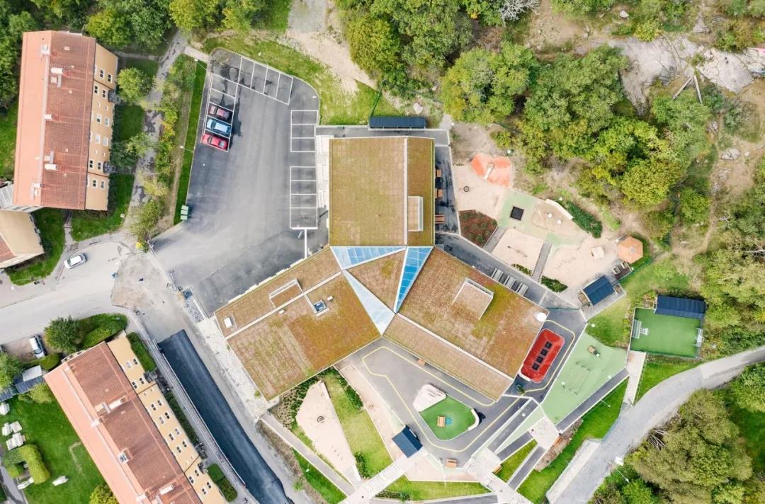 新的Sk?lby學(xué)校和幼兒園是一個(gè)部分位于地下的三葉草形狀的建筑。建筑將室外空間分成三部分:校園、幼兒園的小院子和易到達(dá)的入口和停車場(chǎng)。新學(xué)校代替了場(chǎng)地之前一個(gè)更小的學(xué)校。