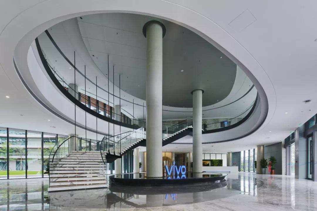 vivo新總部包括主辦公樓、實驗樓、綜合樓、3棟塔樓公寓、接待中心和2棟停車樓等9棟建筑。中國建筑設計研究院有限公司負責了全部建筑設計和景觀設計。