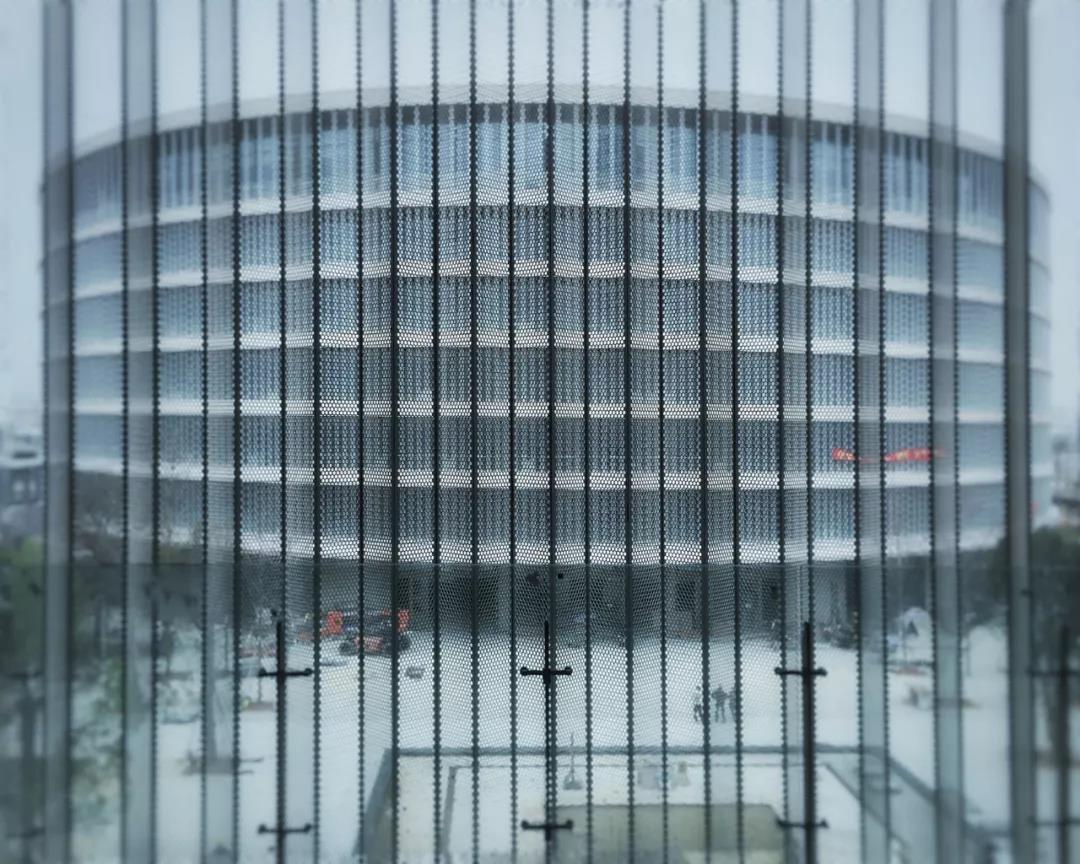 從綜合樓透過金屬穿孔板看辦公樓 ©李淼