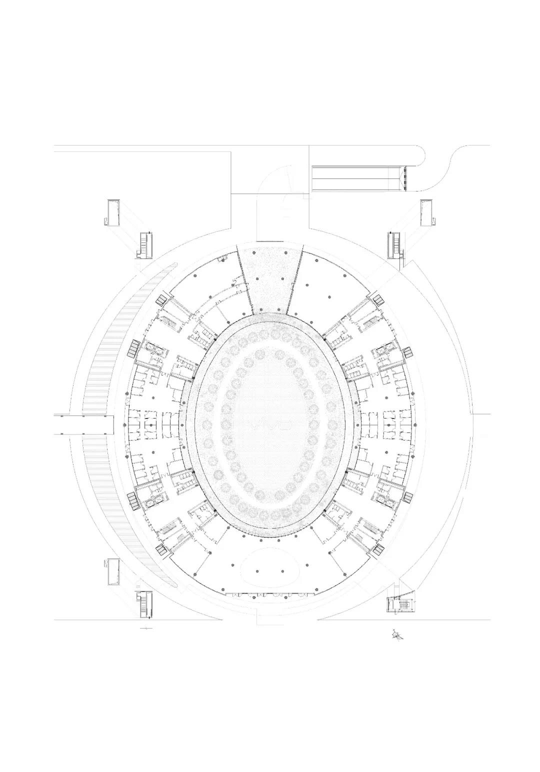 簡潔而優雅的橢圓形主樓圍繞一個巨大的綠化庭院建造,營造出一種強烈的中心性和凝聚力,在主樓內環,使用者可以清晰的感受到彼此,進而感受到一種活力,促進人們交流與合作。