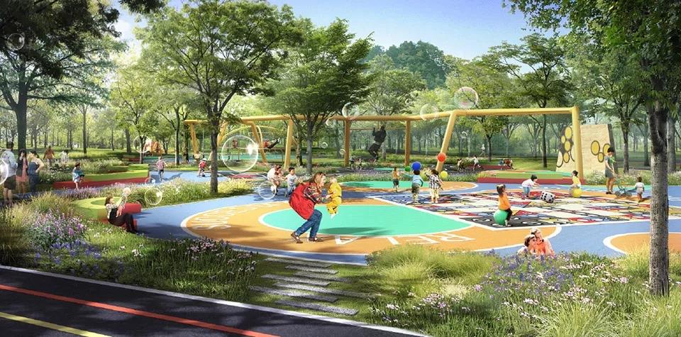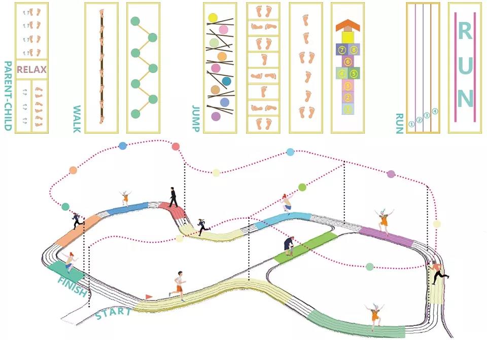 我們收集了來自公園的各種聲音,樹葉摩挲的聲音,鳥兒啼叫的聲音,人們跑步的聲音…最終我們發現,孩子的笑聲,是最動聽的聲音。兒童游樂場在硬質游樂場地的基礎上加入生態游戲區,讓孩子更多接觸草地、石頭、樹枝,與大自然親近。