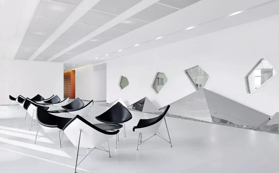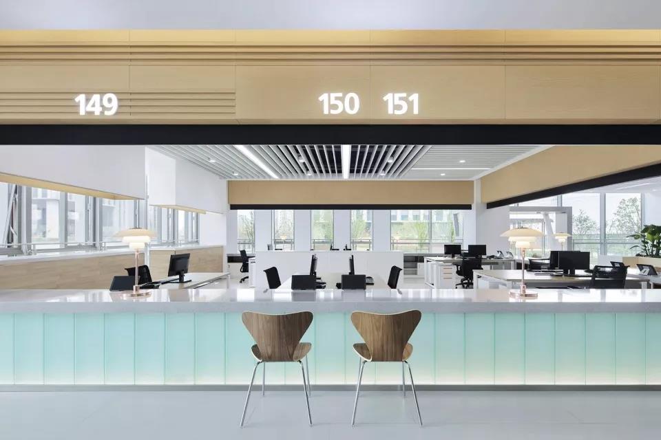 填單區的奶酪墻實際上是視覺去結構化的最小化消隱結果,使用單位要求將N字形的鋼結構用封閉墻體形式包裹,設計師則希望用盡可能小的封閉面的透漏關系回應策略。思考應該都是基于不同時間節點的意識反映,如果這個“劇本”是今天寫,在設計形式上思考語言應該會有所不同。
