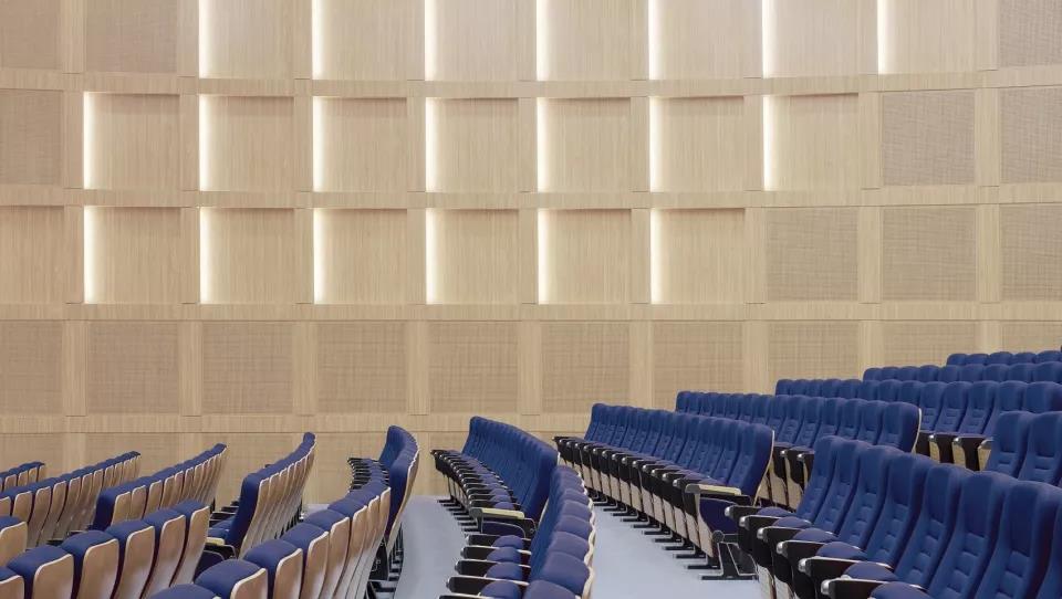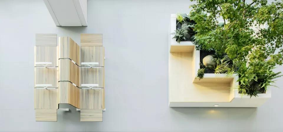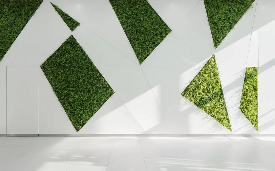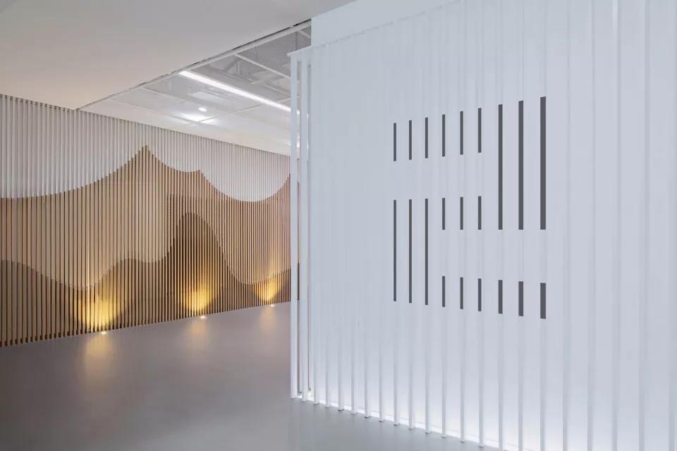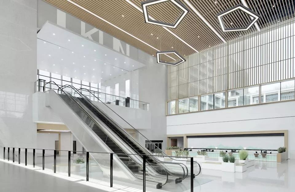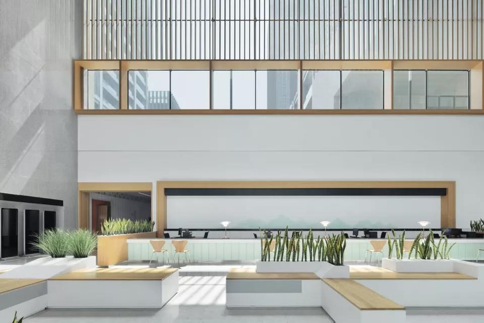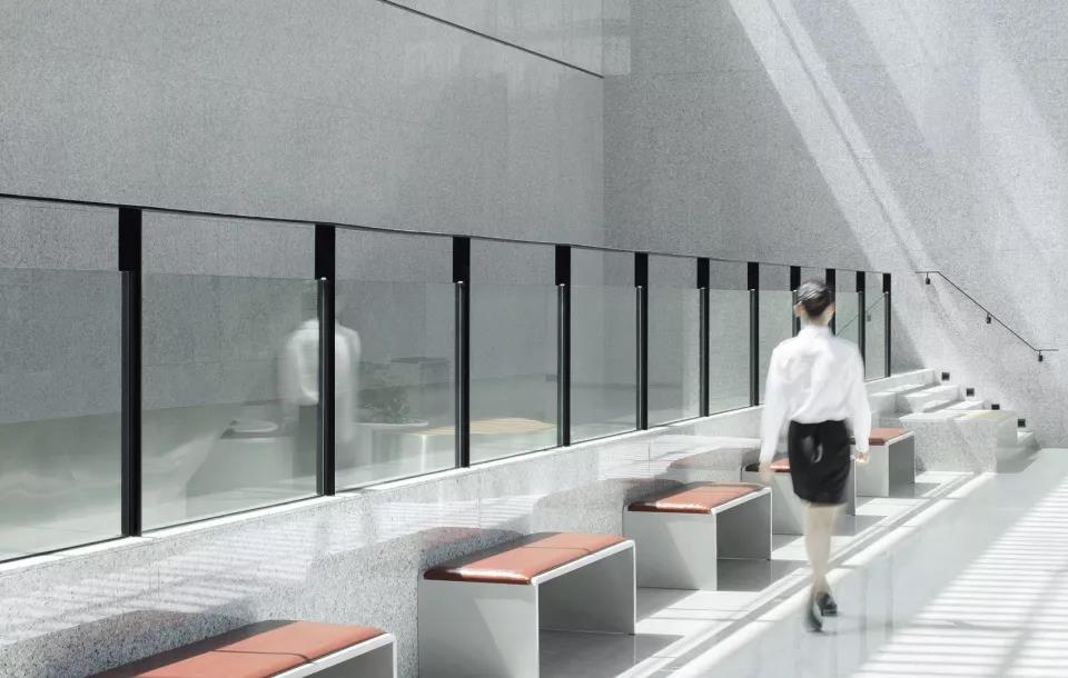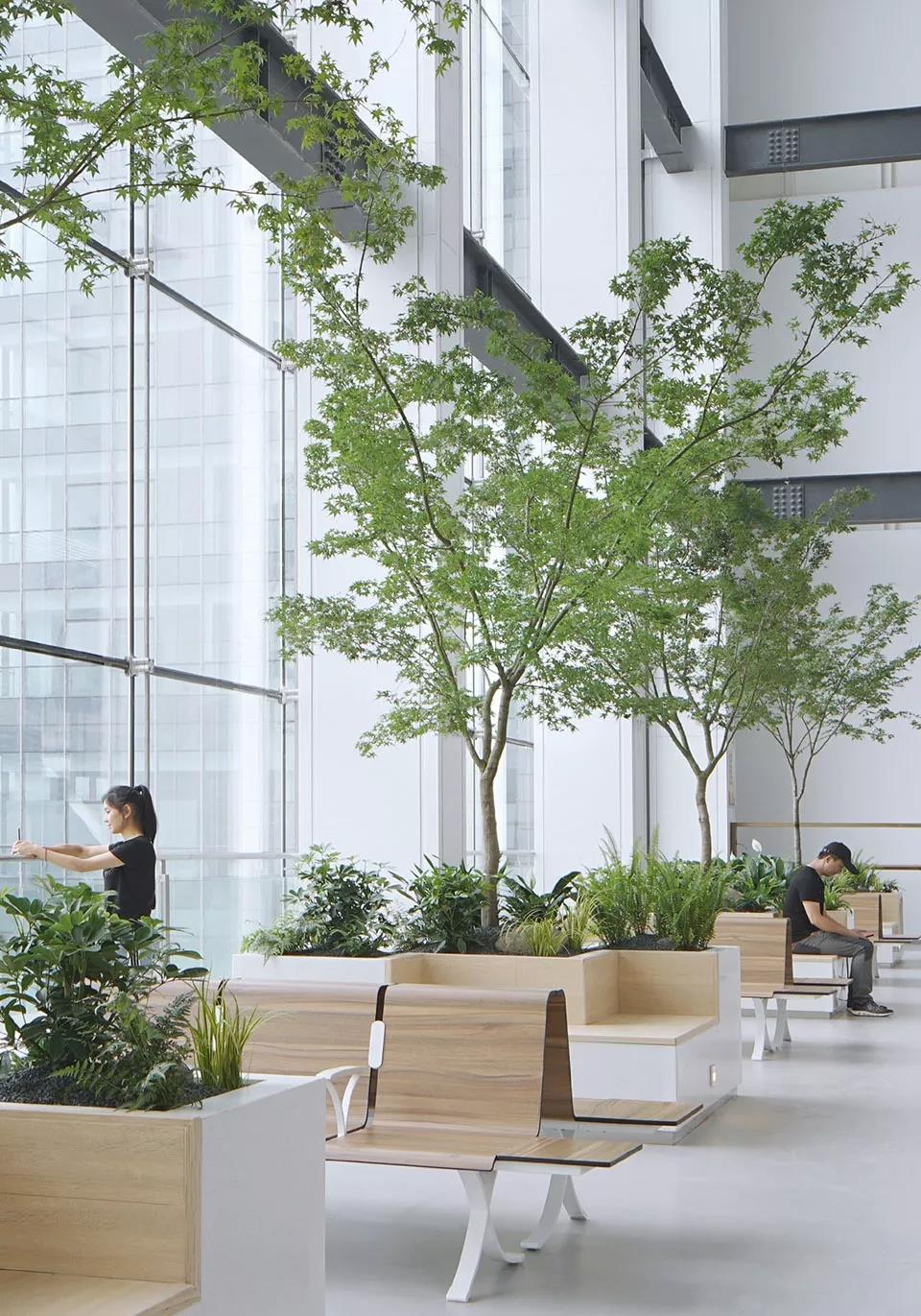 同時可以減少地下空間和室外轉換時的光比過大產生的“暗適應”生理現象。而格柵形式的本身也是具有東方靜謐、秩序氣質的地域文化性表達。包活結合室內景觀的等候區域選用了具有東方庭院氣質的青楓樹,在陽光與室外綠地的交融中消除了建筑內外的差異,營造空間中人與自然的親密和諧氛圍。