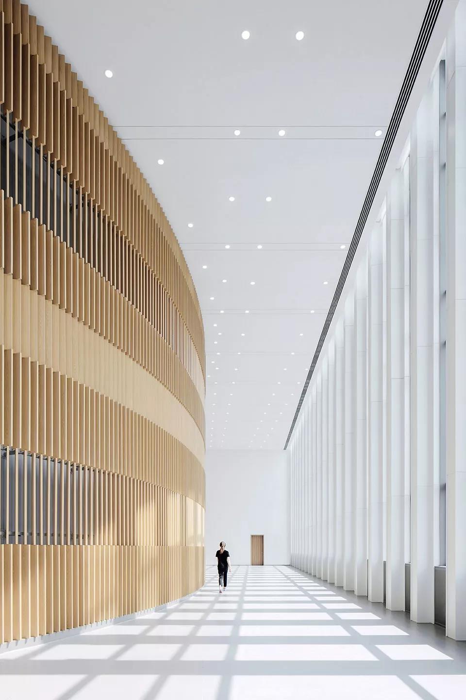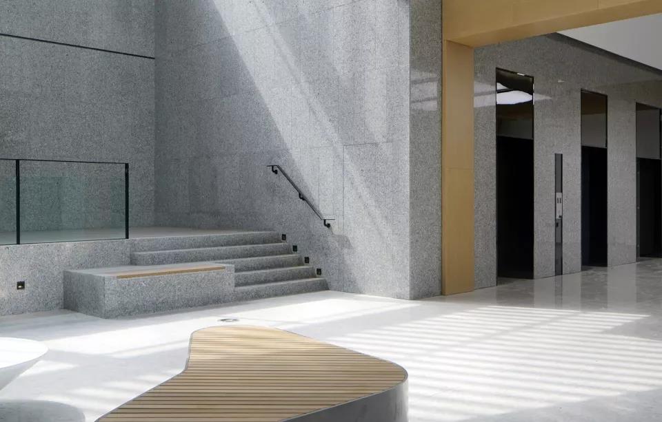 另外一個因素是項目有美國綠色建筑評估體系LEED-NC金級認證標準,對再利用材料和節能環保有較高的要求。同時從整體方案的地域文化性控制來講中性灰色調和水墨江南的氣質也是吻合的。包括使用的拋光混凝土地坪也都沒有使用環氧基,而是采用水泥基。其中當然也有政府對造價控制的嚴格經濟性要求。
