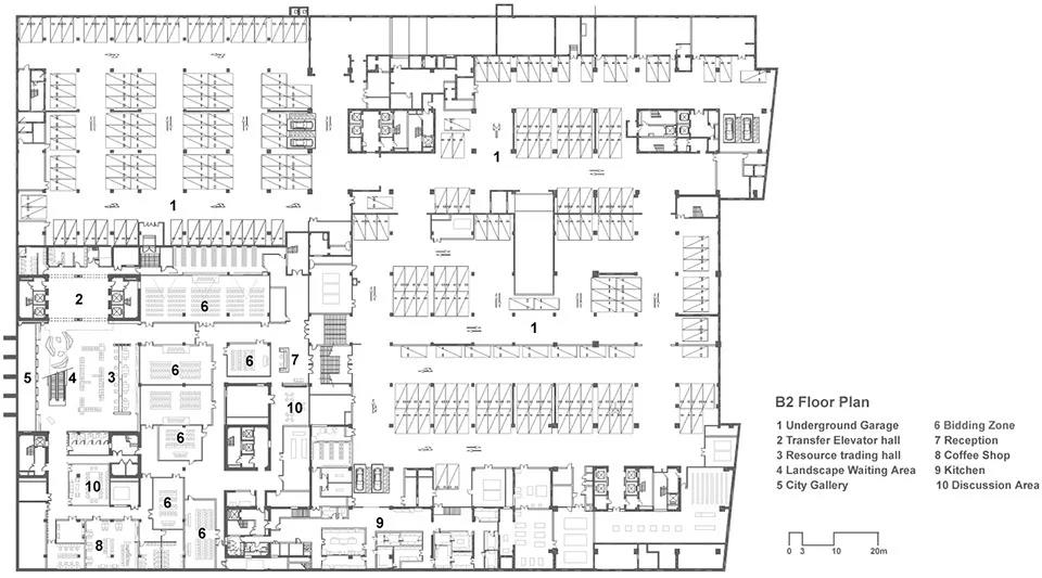 項目本身作為大型公共服務職能空間,“陽光”、“開放”已經是成為城市公共性空間必要的精神氣質和某種隱喻。在B2層至2層的通高空間兩側增設格柵處理中,西側是考慮遮陽和弱化鄰樓體量帶來壓迫感,東側是將觀察視線壓低至建筑圍合的竹林蓮池水景庭院景觀,讓昆山古籍《玉山雅集》中所描述的“舍前有修竹,舍后有芙蕖。掇蓮置豆,清風座隅。倦來聊掩窗,步出臨前除。”的畫面完整呈現于預設的框景中。