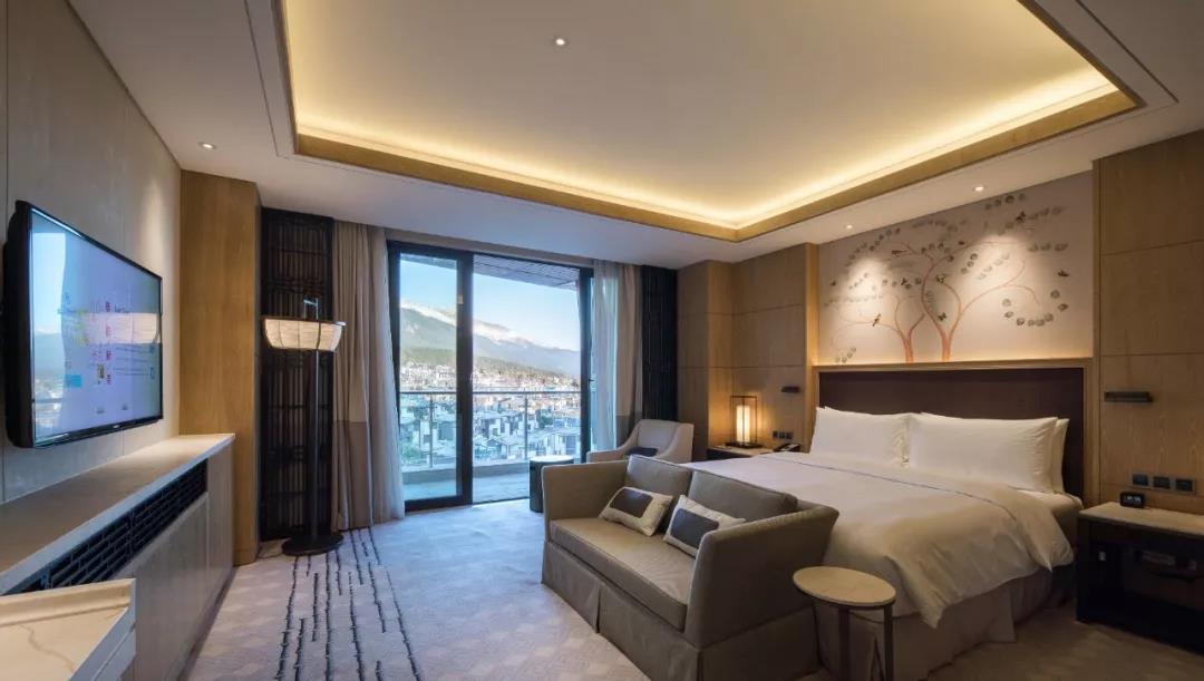 建筑主體左右兩側的386 間客房,每間都配有獨立陽臺,視野開闊。房間布局是常見的希爾頓風格,沒有過多的裝飾與色彩,簡單干凈而不冷清。早晨伴著洱海第一縷陽光醒來,這是大理希爾頓提供的最美妙的體驗之一。