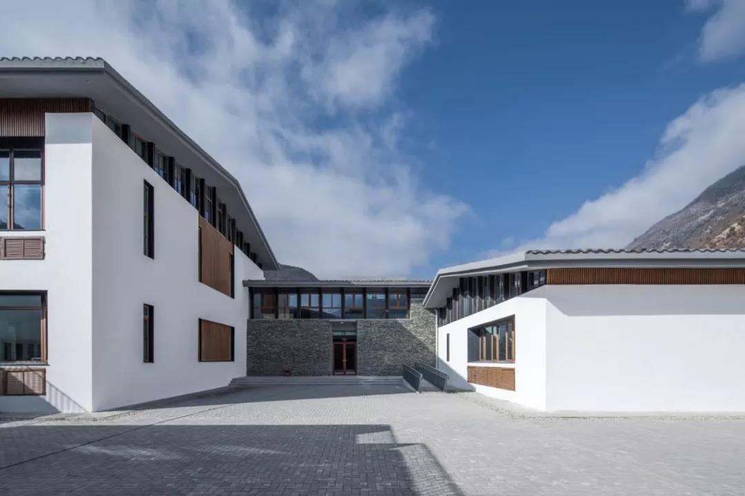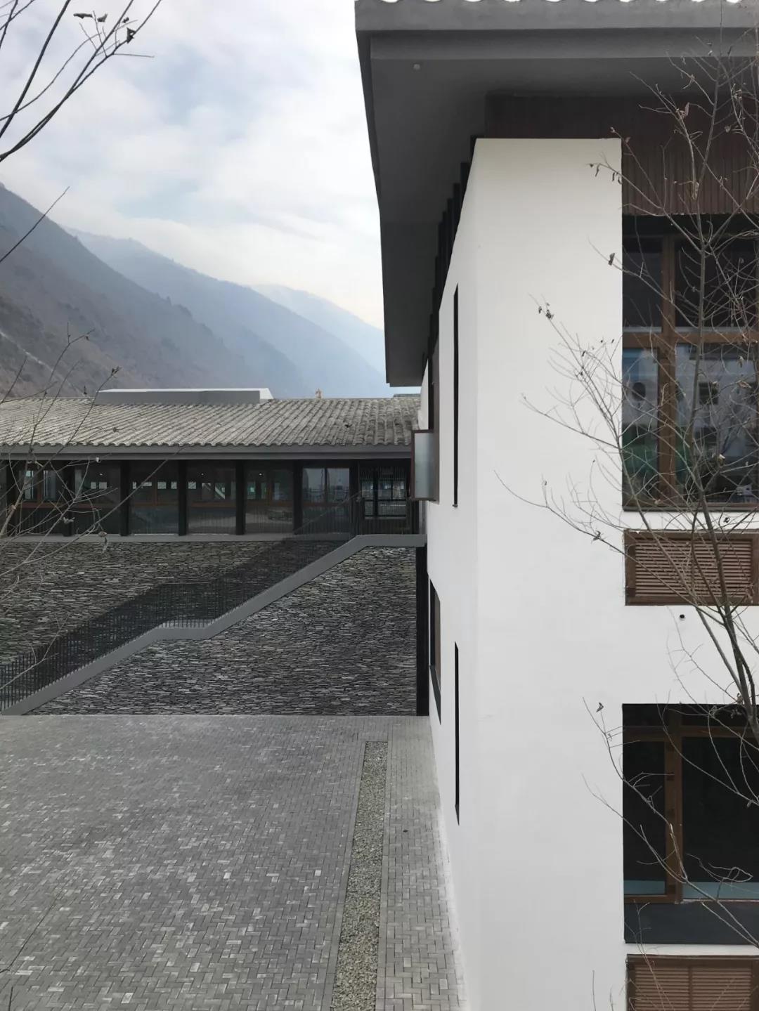原漳扎鎮小學在地震中損壞,災后重建規模為12班學校。項目設計需要在工期短、造價緊張的條件下,滿足當地教育的需求,并回應特殊的人文與氣候地域環境。