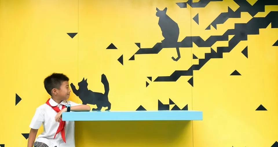 樹上的貓:施工期間地面發現貓留下的腳印,原來場地一直有流浪貓在此安家,所以我們把貓與大樹結合創造有趣的畫面。