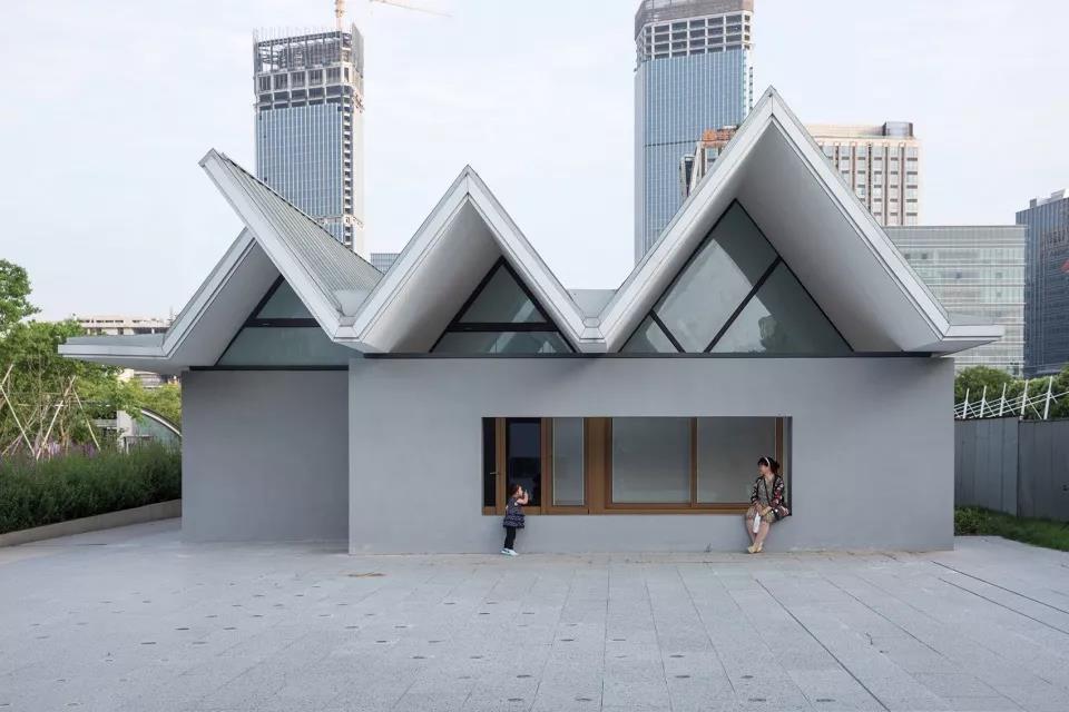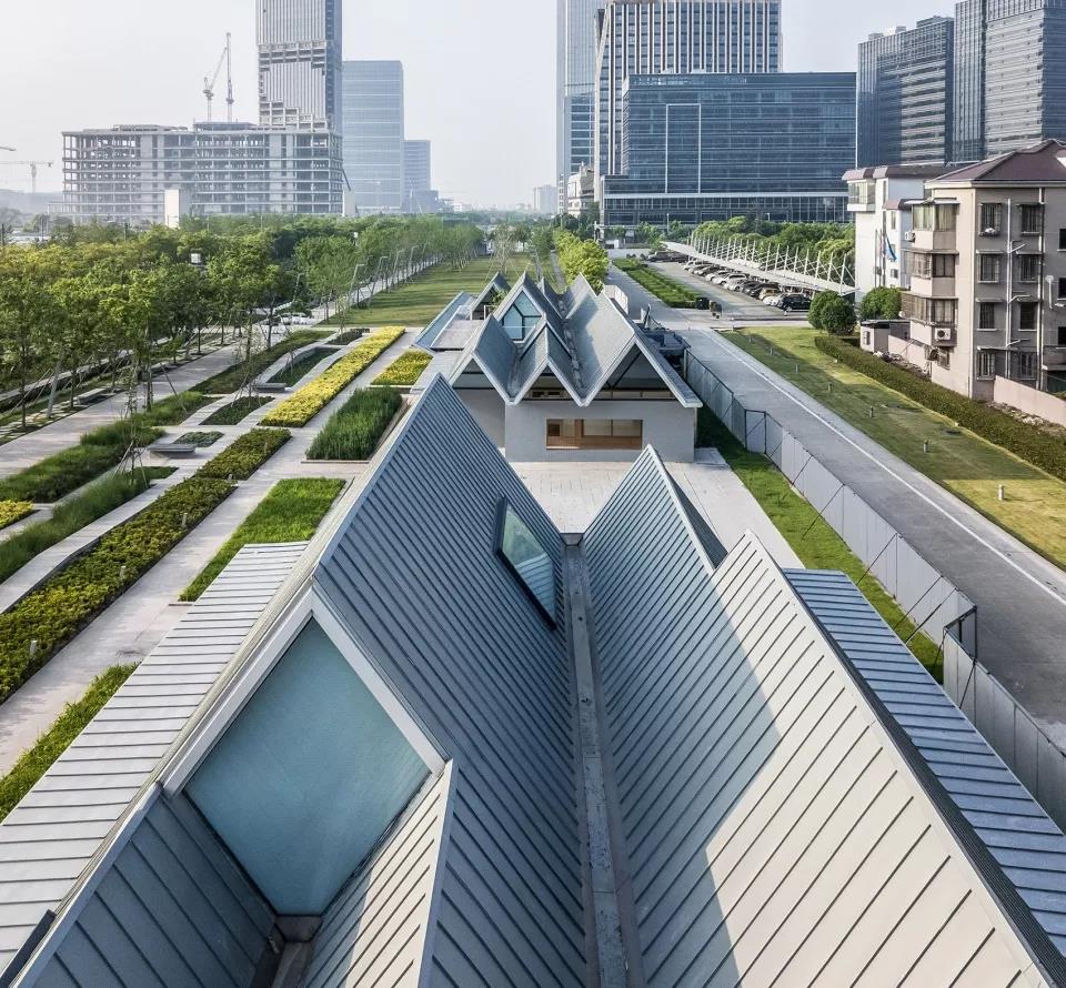 從結構體系來看,活動之家是一種變異的折板體系,兩折屋面間波谷的平段在同一個高度,但波峰的高度根據跨度(進深)的不同而各不相同。利用折板的整體高度,建筑只需要很薄的板厚便可以獲很大的南北向跨度。