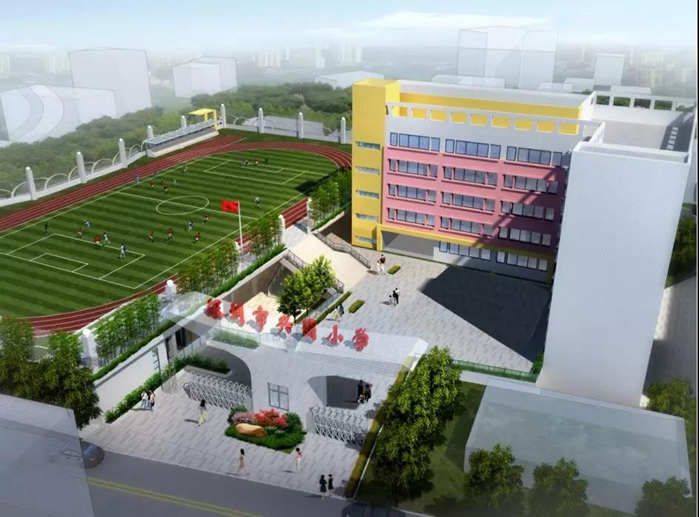 總體規劃布局:尊重原有校園肌理與文化,盡量減少改造對教學的影響。在規劃上用地在原有運動區進行改擴建,校前廣場也予以適當改造,但需盡量不影響原有校前廣場的教學活動,并保證它與原有教學樓保持緊密的聯系。