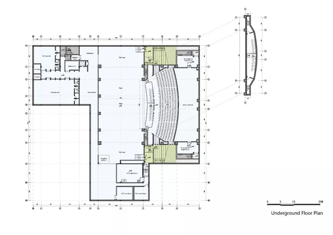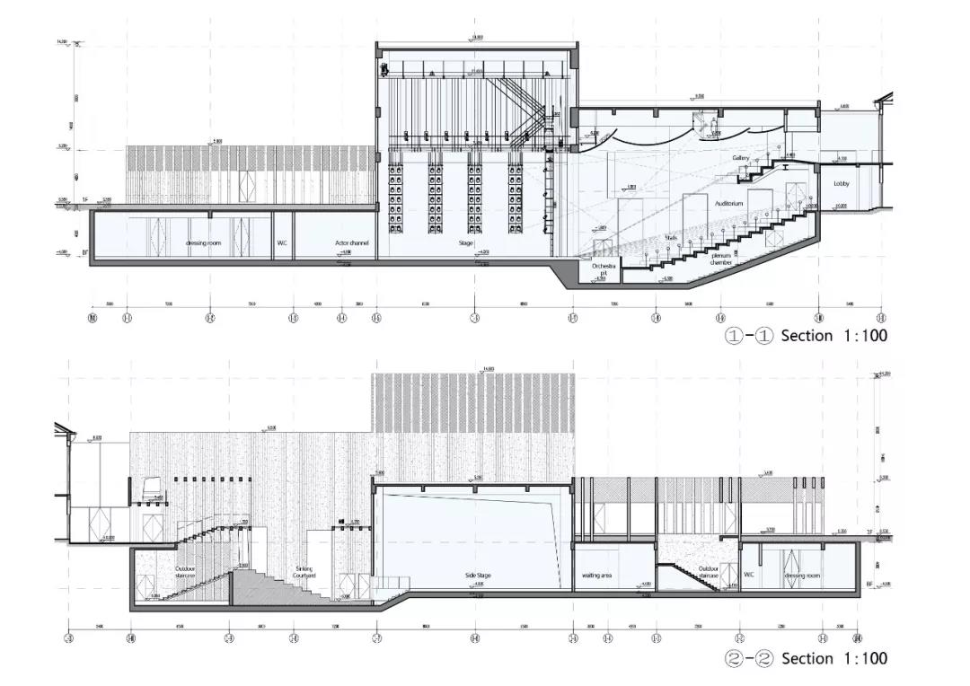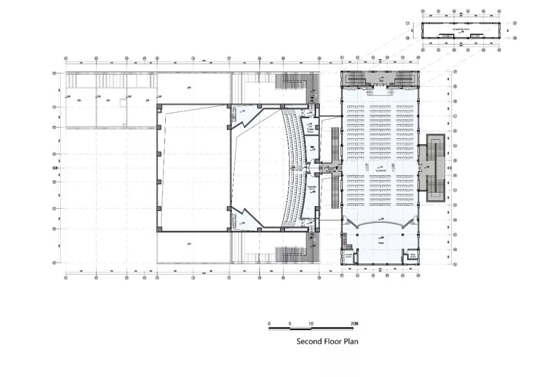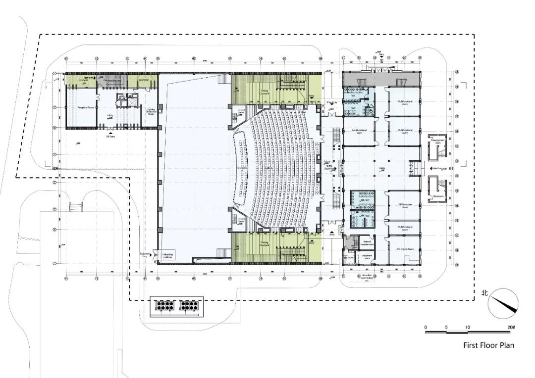 功能布局突破劇場前廳,觀眾廳,舞臺區,分區過于明確的功能擺布方式,結合空間訴求,通過對新老建筑的連接和梳理,在建筑的底層及二層將不同形式的演出集會空間、公共展示空間、休憩交流空間功能充分融合,形成高效關聯,公共開放的復合功能綜合體。