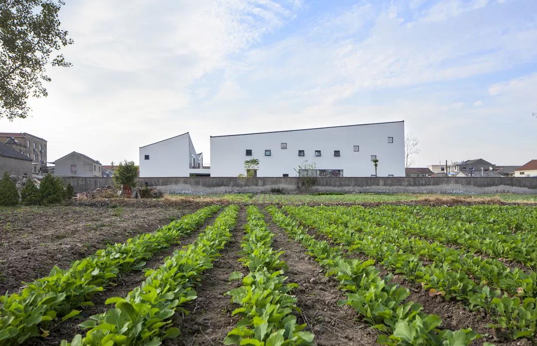 我們在北沙、碩集兩所幼兒園的設(shè)計上運用了相似的手法,又因地制宜,各具考量。與北沙村坐落于水鄉(xiāng)風景間、模擬村莊形態(tài)的幼兒園截然不同,碩集社區(qū)這座幼兒園,位于欣欣向榮的縣城核心區(qū),被密集的商業(yè)街區(qū)、事業(yè)單位、鄉(xiāng)鎮(zhèn)企業(yè),繁忙的鄉(xiāng)鎮(zhèn)公路和堆滿廢棄物的待建空地環(huán)繞,周邊不算開闊,景致也乏善可陳。