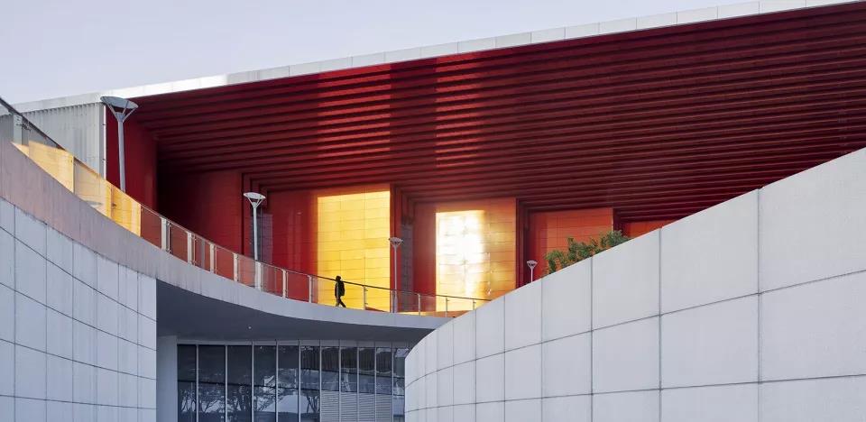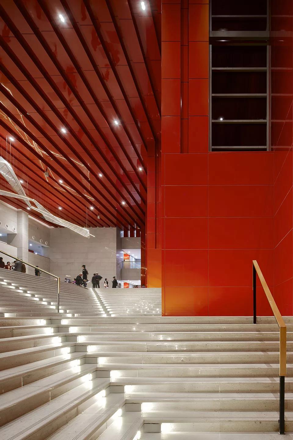 紅色的金屬幻彩板是設計師為本項目特別定制的“義烏紅”,其特點是:平常為朱紅,在特定的光線角度下卻呈現出燦爛的金******。“義烏紅”隱喻著義烏可以為世界各地商旅提供發現財富、實現夢想的機會,到義烏文化廣場尋找那一抹“金色”,已經成為參觀者經常參與的趣事。