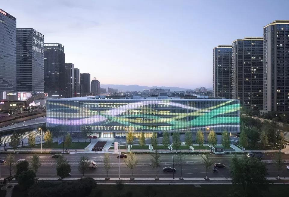 義烏文化廣場選址于義烏經濟技術開發區義烏江畔,總建筑面積為82360平方米,是集文化娛樂、教育培訓、體育健身等多種功能為一體的大型文化綜合體。義烏以小商品而聞名于世界,這里中小企業密集,民營經濟高度發展,反映在城市建設上就是大量同質化小體量高密度的建筑彌漫,市民渴望標志性城市建筑以及開放的公共活動場所。