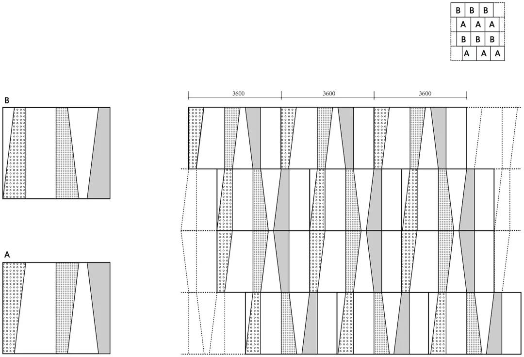 在構造方面,這些梯形體都是工廠預制件,在施工現場工人利用鋁板的孔洞把梯形體固定在其內部的結構支架上,避免了固定構件外露而影響外觀。