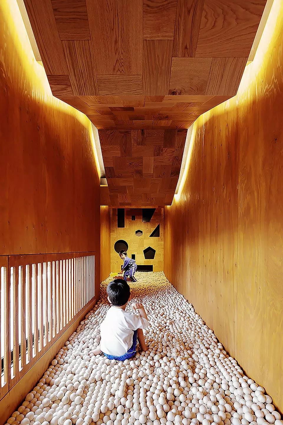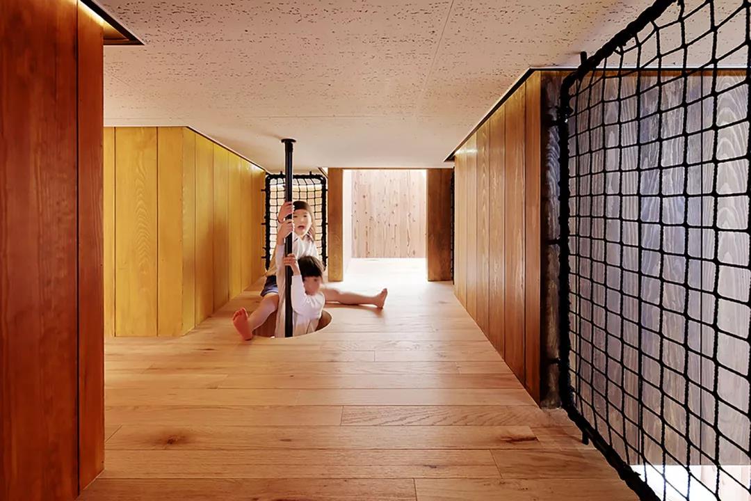 ▼中央游戲室內設有兒童攀爬云梯和滑梯