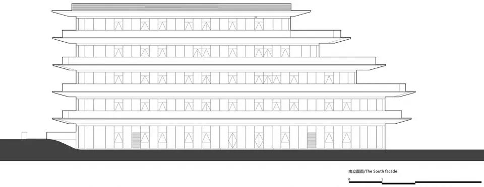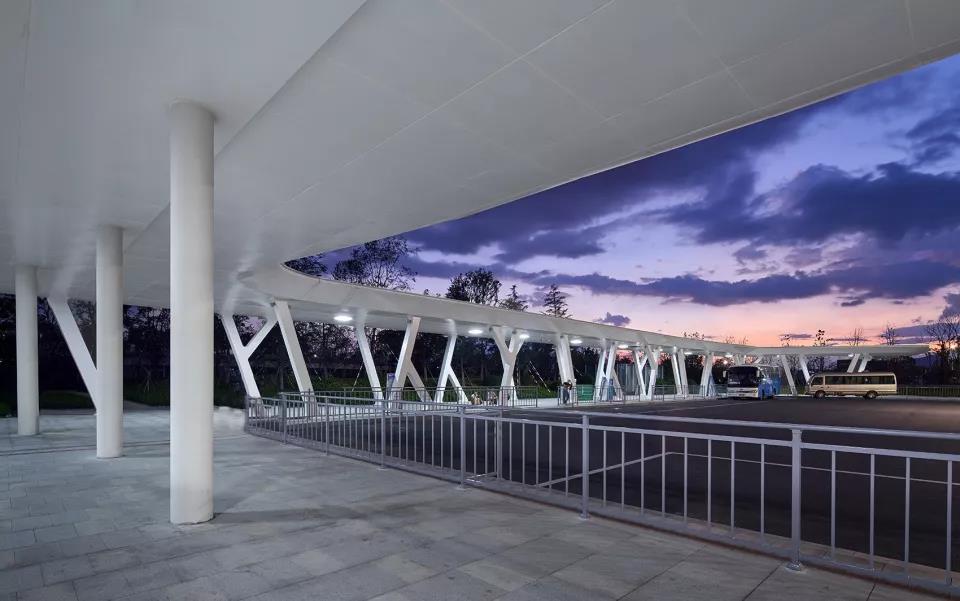 站房西北側的綜合樓通過層層的退臺向上延展而達到垂直綠化的目的。其平面呈弧形,立面以玻璃、鋁型材為主,精細的劃分展現出簡潔大氣的建筑形象。綜合樓部分采用覆土的營造手法,與地景設計結合的更加緊密。整個建筑如同從土地中生長出來一般,舒展著輕盈、柔和的體態將環境納入麾下。