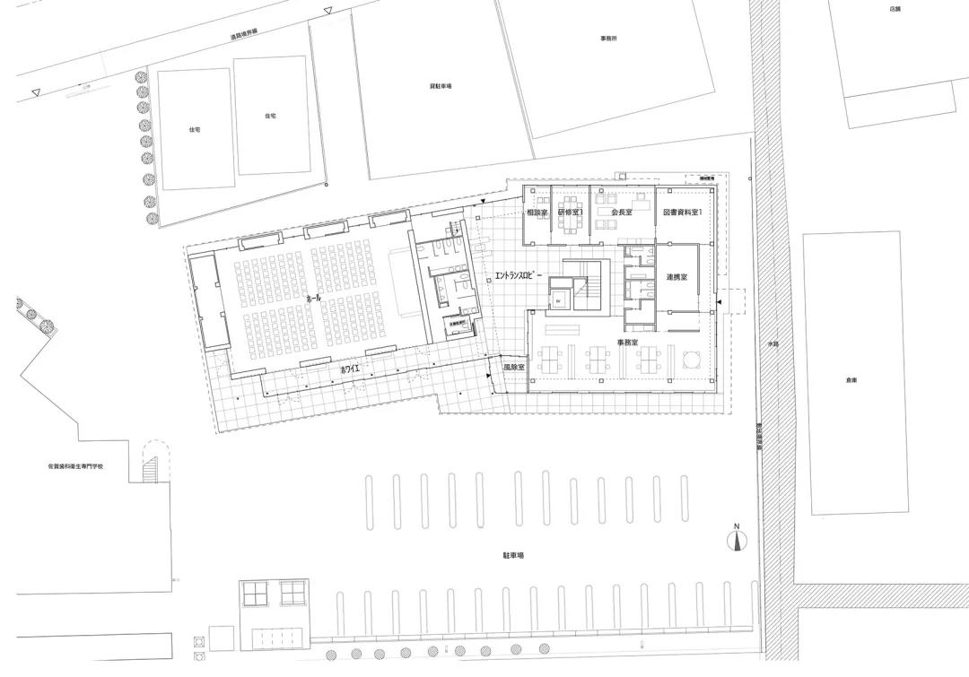 佐賀舊城的小巷和水道至今維持著原來的面貌,牙醫協會經辦的職業學校就位于其中一條街道的深處。除了作為牙醫協會的辦公地點,該建筑也用于教學和租賃,大樓的主廳保持了獨立,一層的體量在各個方向上都擁有寬闊的開口,便于街道上的人們進入。