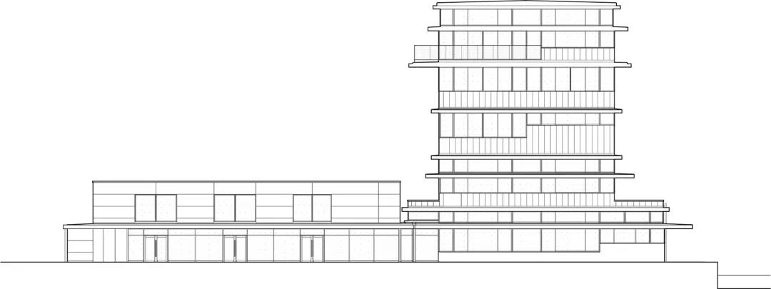 塔樓的體量較為緊湊,主要用于培訓和辦公。獨立大廳和辦公塔樓通過巨大的屋面被整合為一座一體化的建筑,并通過屋檐下的門廳形成空間上的連接。這種布局方式也從某種程度上展現了“開放的牙醫社會”的理念。