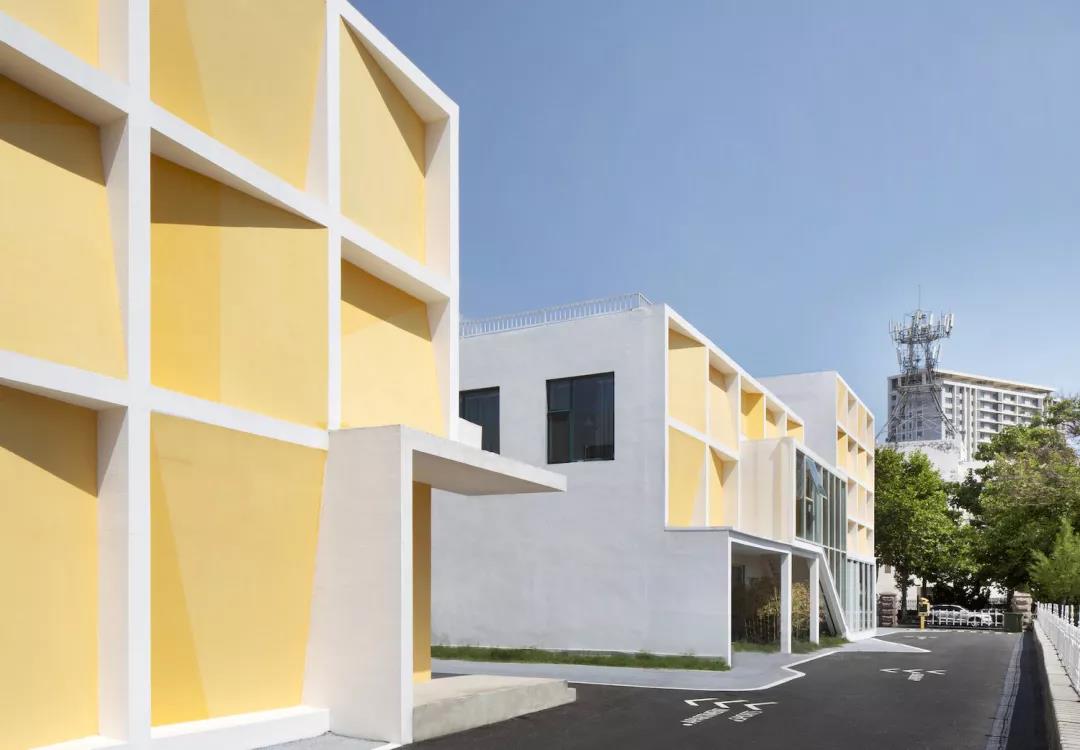 ▼三棟建筑的東側山墻面也采用統一、連續的方格子形式語言