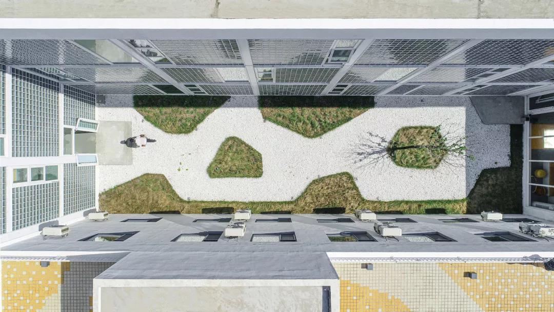 ▼內院鋪設白色礫石