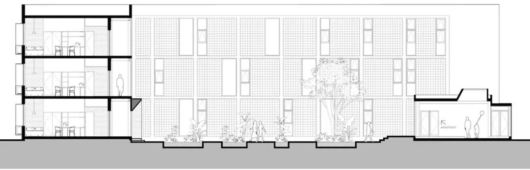 ▼內院連接入口門廳,是進入公寓內部的第一印象