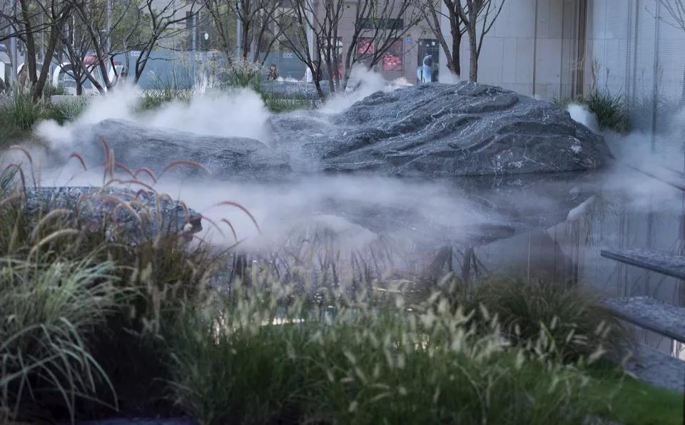 廣場的中心,以石為主題,模擬近旁的市政森林公園里那些從泥土里生長出來的巨石,配以零星的苔蘚和小草,讓街區里的孩子可以在其間攀爬跳躍,追逐躲藏,體驗游于自然的樂趣。