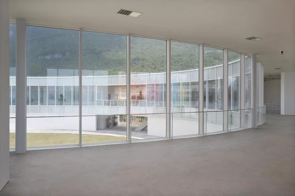 美術(shù)館作為非日常空間的代名詞,藝術(shù)品和參觀者都被限制在相對獨立的空間里,而懶壩美術(shù)館的設(shè)計則開放了建筑,讓藝術(shù)品、自然和人在同一場景中共存。