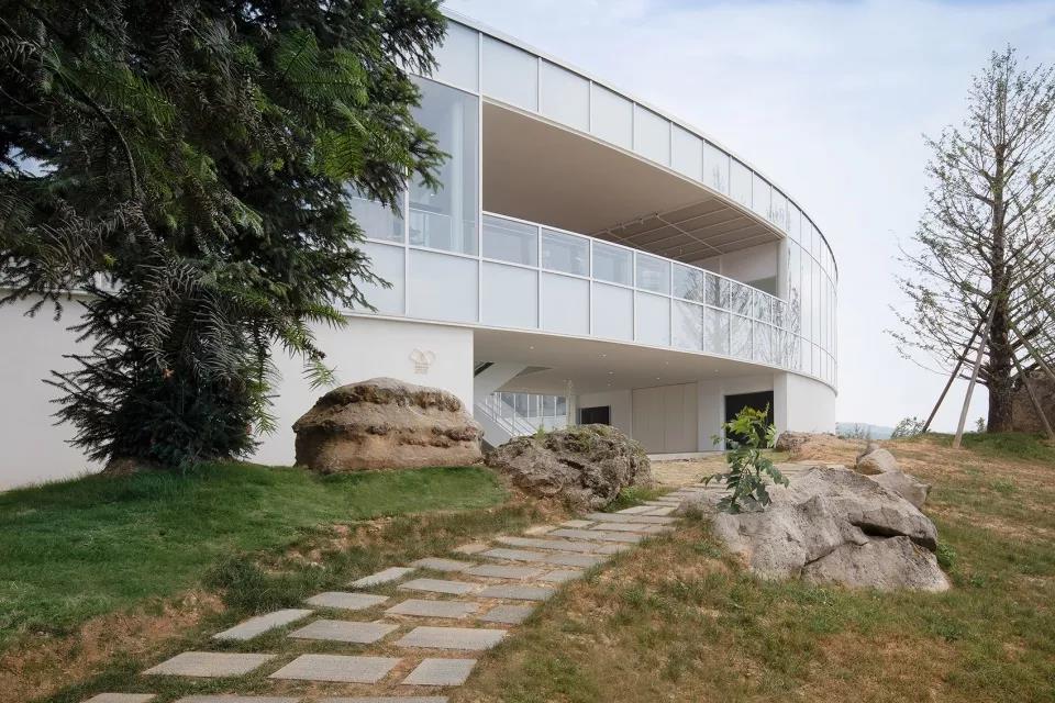 ▼建筑位于微聳的山坡上