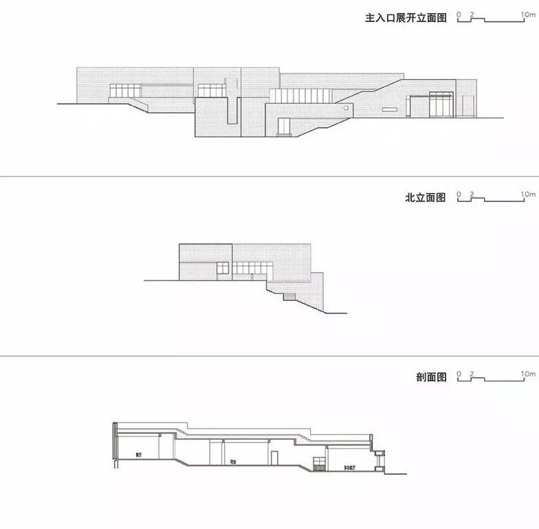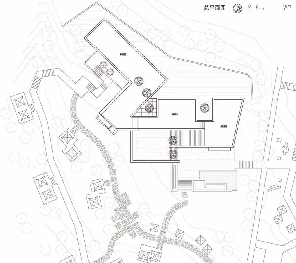 建筑通過片墻在場地中形成如大地藝術(shù)般的幾何構(gòu)成