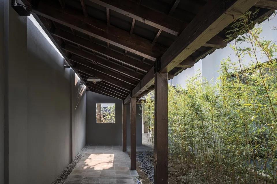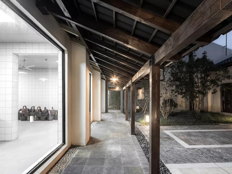 酒廠原有建筑是一系列典型的長形廠房空間。在設計中并沒有對廠房本身做過多的改變,放棄對“形”的塑造,轉而為每個既有的建筑營造恰當的周邊環境,從而改變建筑。如果說園林中的建筑類型是靠與周邊環境的關系定義的,那么不去改變建筑本身,而去改變周邊環境,就一定能改變建筑。在改造中添加的元素之于整個項目相當于作文里的虛詞,起到的是轉折、連接、遞進的作用,它們自身并無特別實在的含意,它們的意義只有在實詞之間的關系中凸顯。與其說是改造了建筑,不如說是構筑了花園。