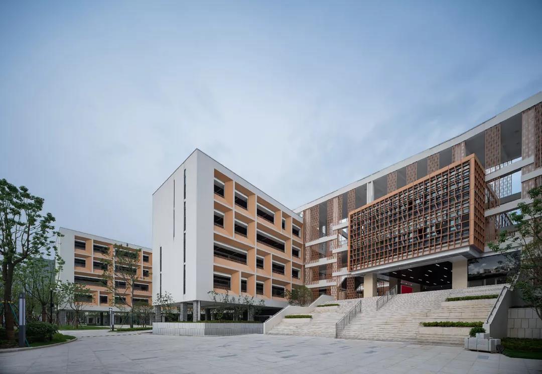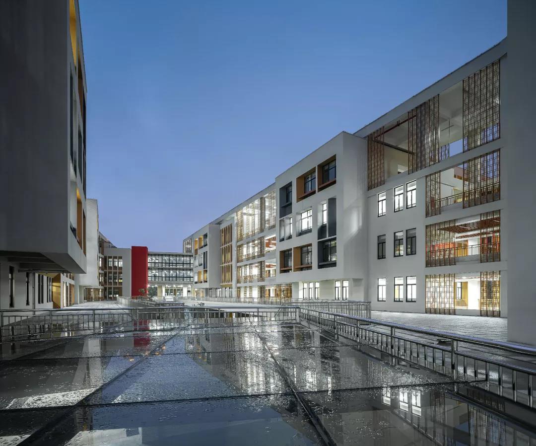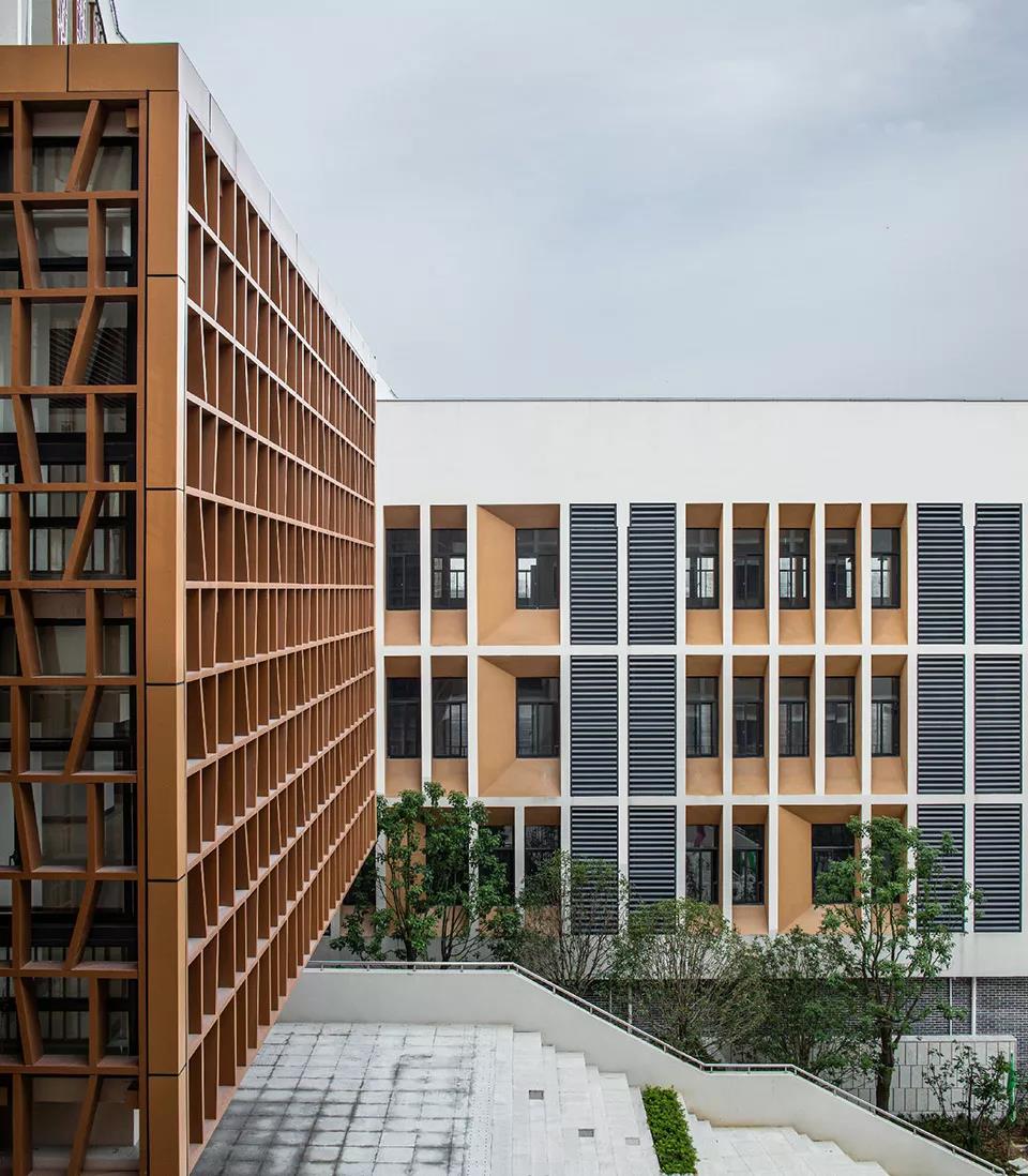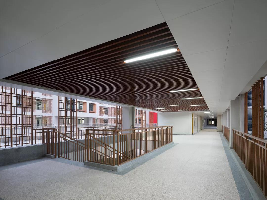 潘火實驗中學與傳統中學的最大差別是它并不是孤立的建筑體,而是一座開放式的園林校園,師生于自然中交流。一系列的開放式空間不僅釋放了學習的壓力,也激發了交流的廣泛性,寓教于樂又別開生面。