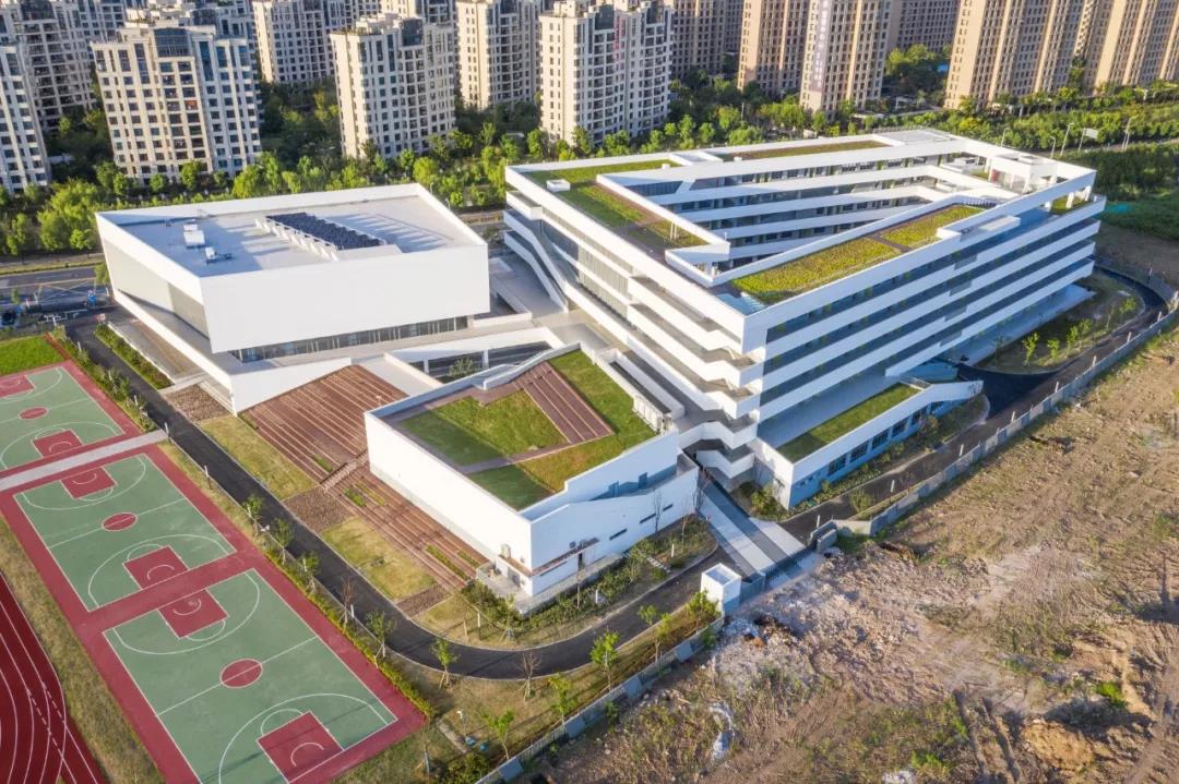 庭院幾何式的景觀劃分是整體建筑形態的有機延續,引導學生在此開展豐富多彩的活動。庭院中的雨水花園、海綿城市展示等景觀設施則給學生提供了近距離親近自然的機會,精心搭配的植物品種也會隨著四季變化呈現出不同的校園景色。