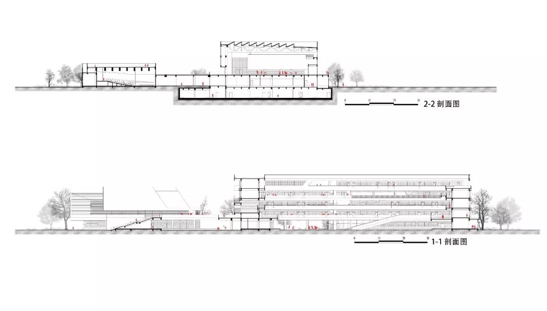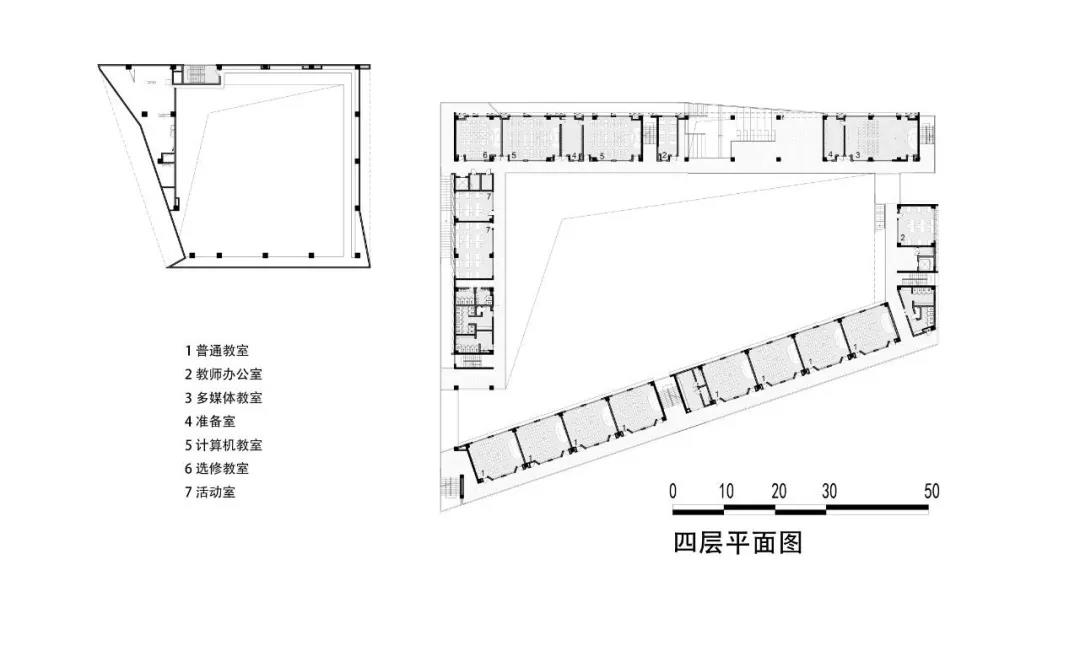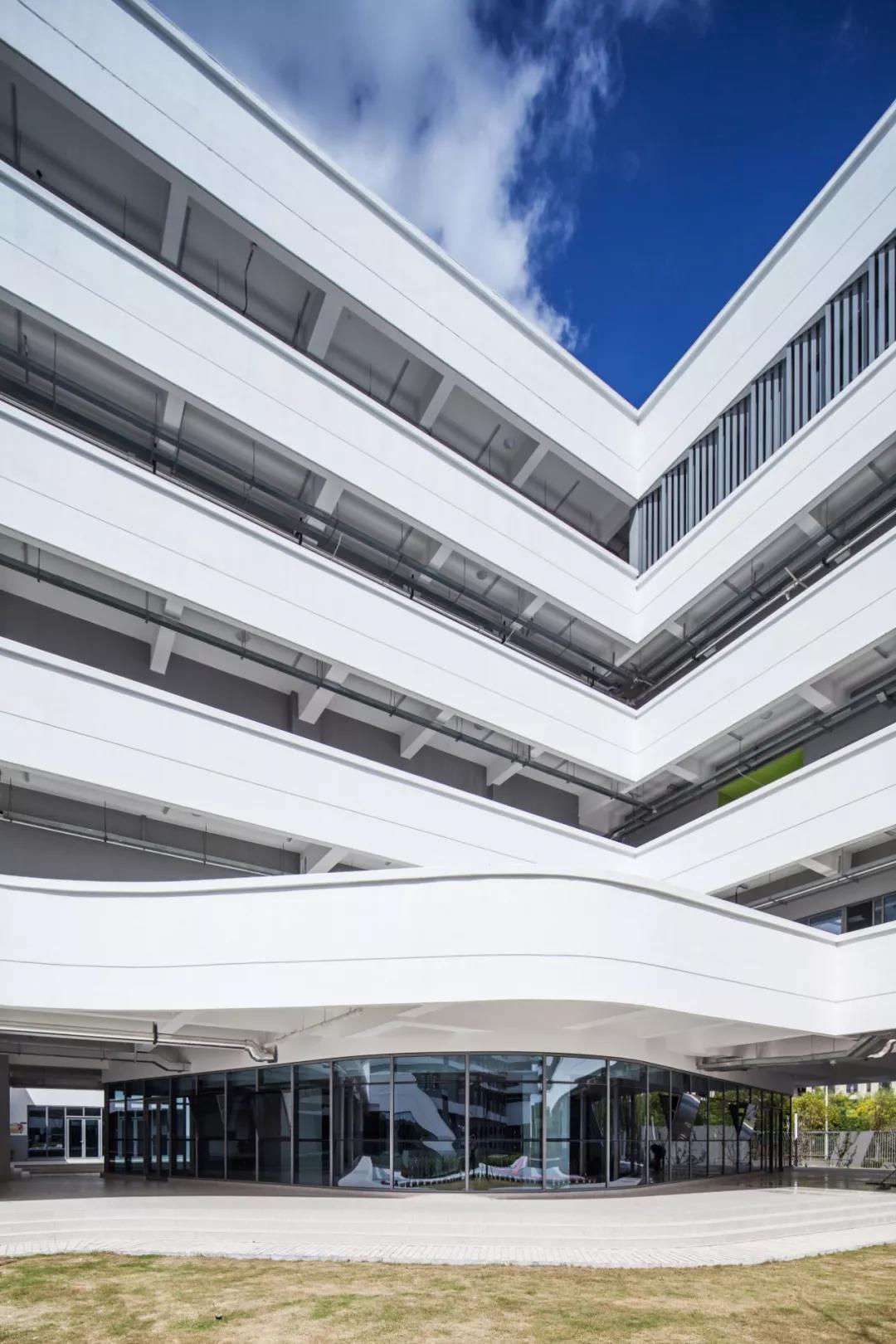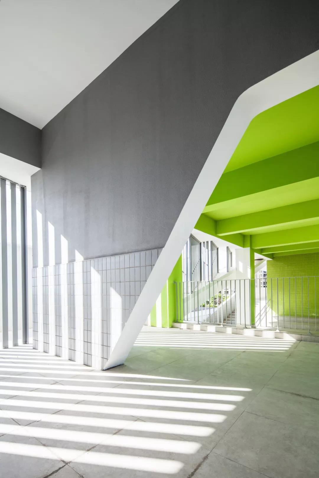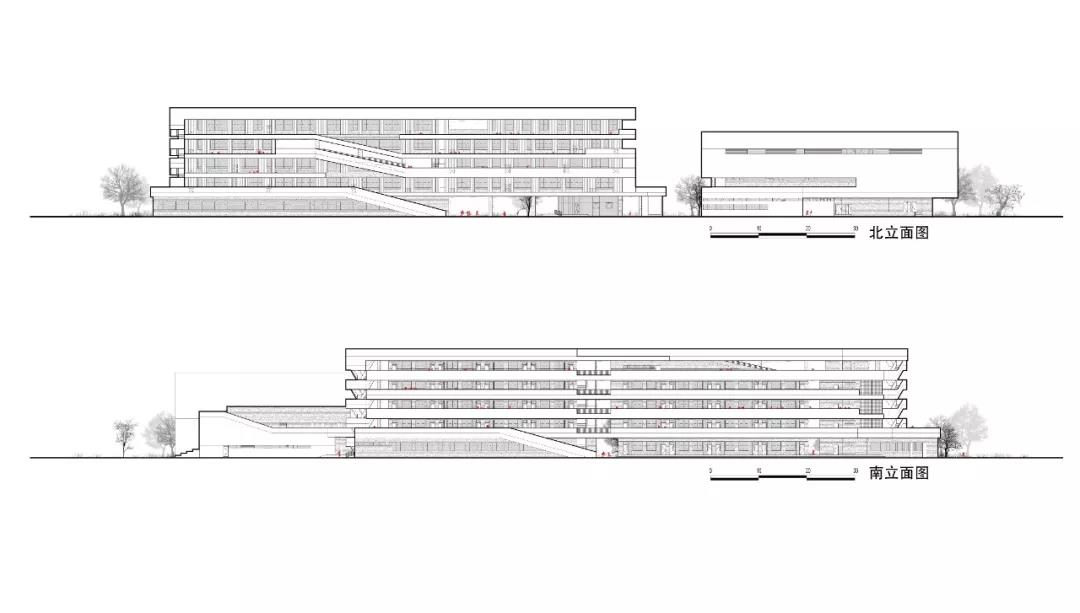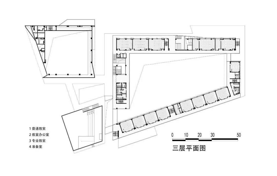 我們在教學樓每層的不同部位設置了半室外的多功能共享空間,并通過變化的路徑將其串聯,實現了不同室外空間的滲透,打破了教學樓層與層之間的界限,形成了貫穿建筑的立體環繞路徑。